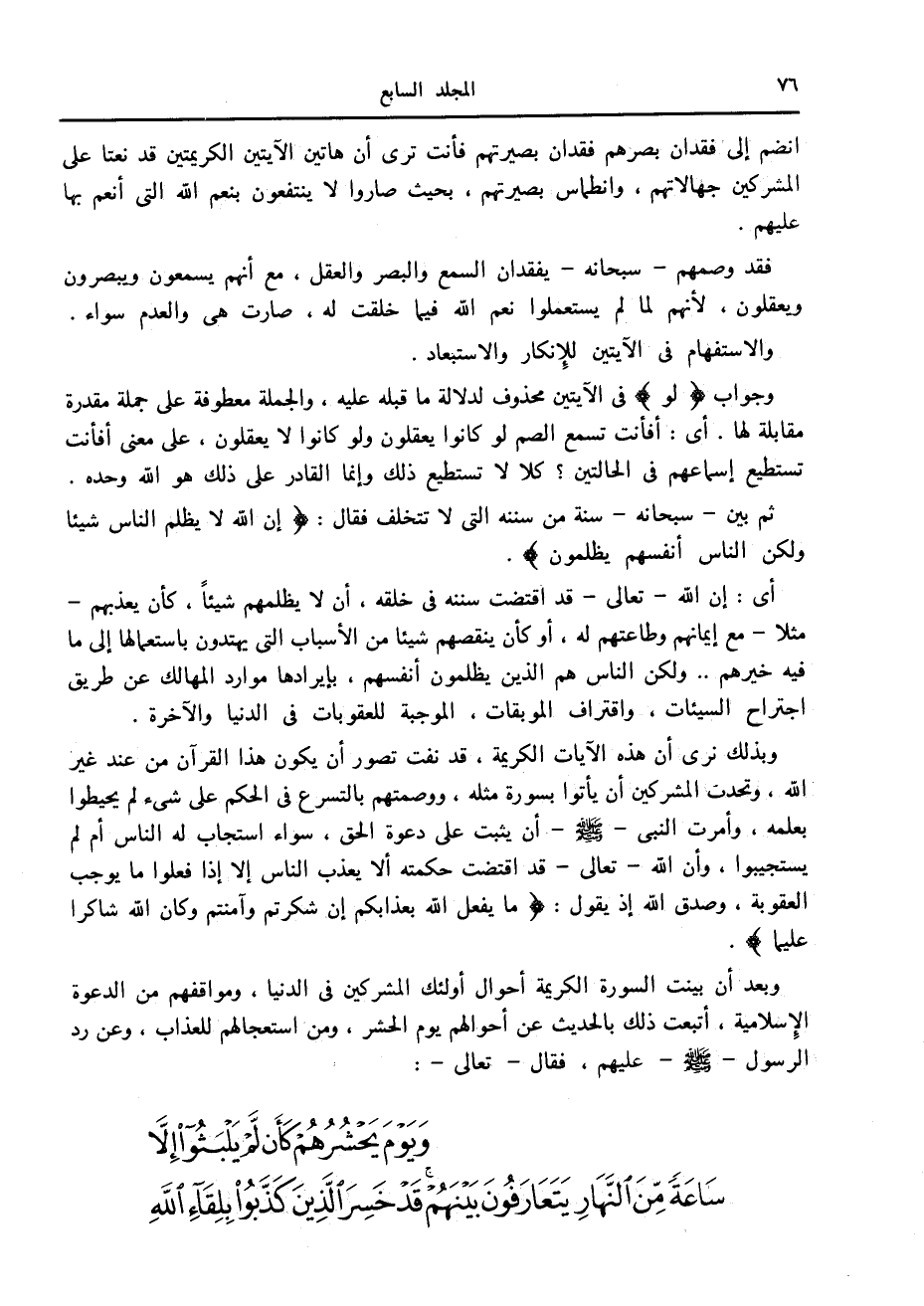 انضم إلى فقدان بصرهم فقدان بصيرتهم فأنت ترى أن هاتين الآيتين الكريمتين قد نعتا على المشركين جهالاتهم، وانطماس بصيرتهم، بحيث صاروا لا ينتفعون بنعم الله التي أنعم بها عليهم.