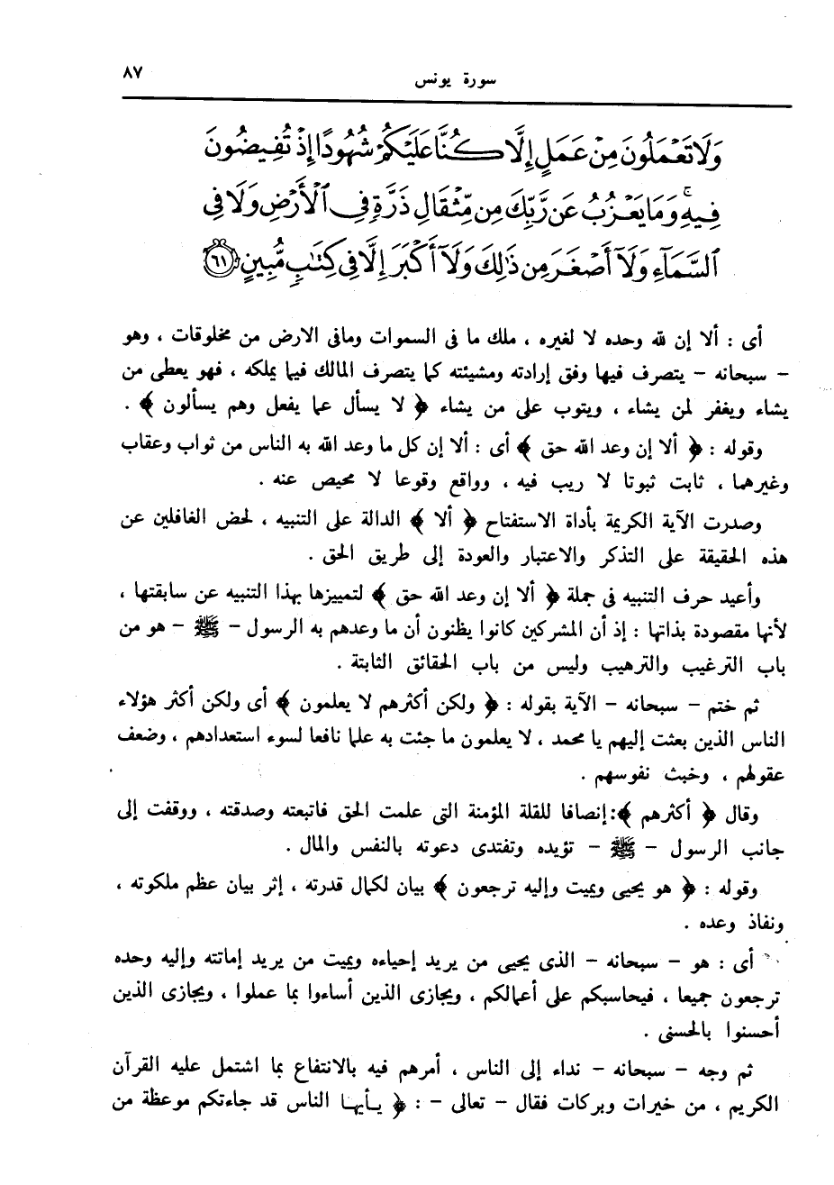 وقوله: أَلا إِنَّ وَعْدَ اللَّهِ حَقٌّ أى: ألا إن كل ما وعد الله به الناس من ثواب وعقاب وغيرهما، ثابت ثبوتا لا ريب فيه، وواقع وقوعا لا محيص عنه.
