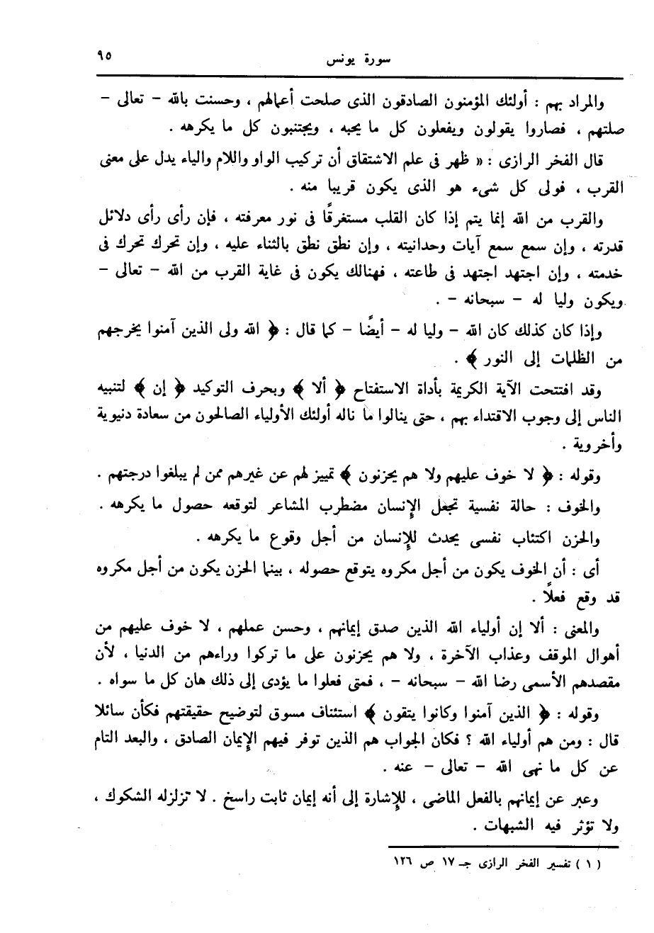 (1) تفسير الفخر الرازي ج 17 ص 126.