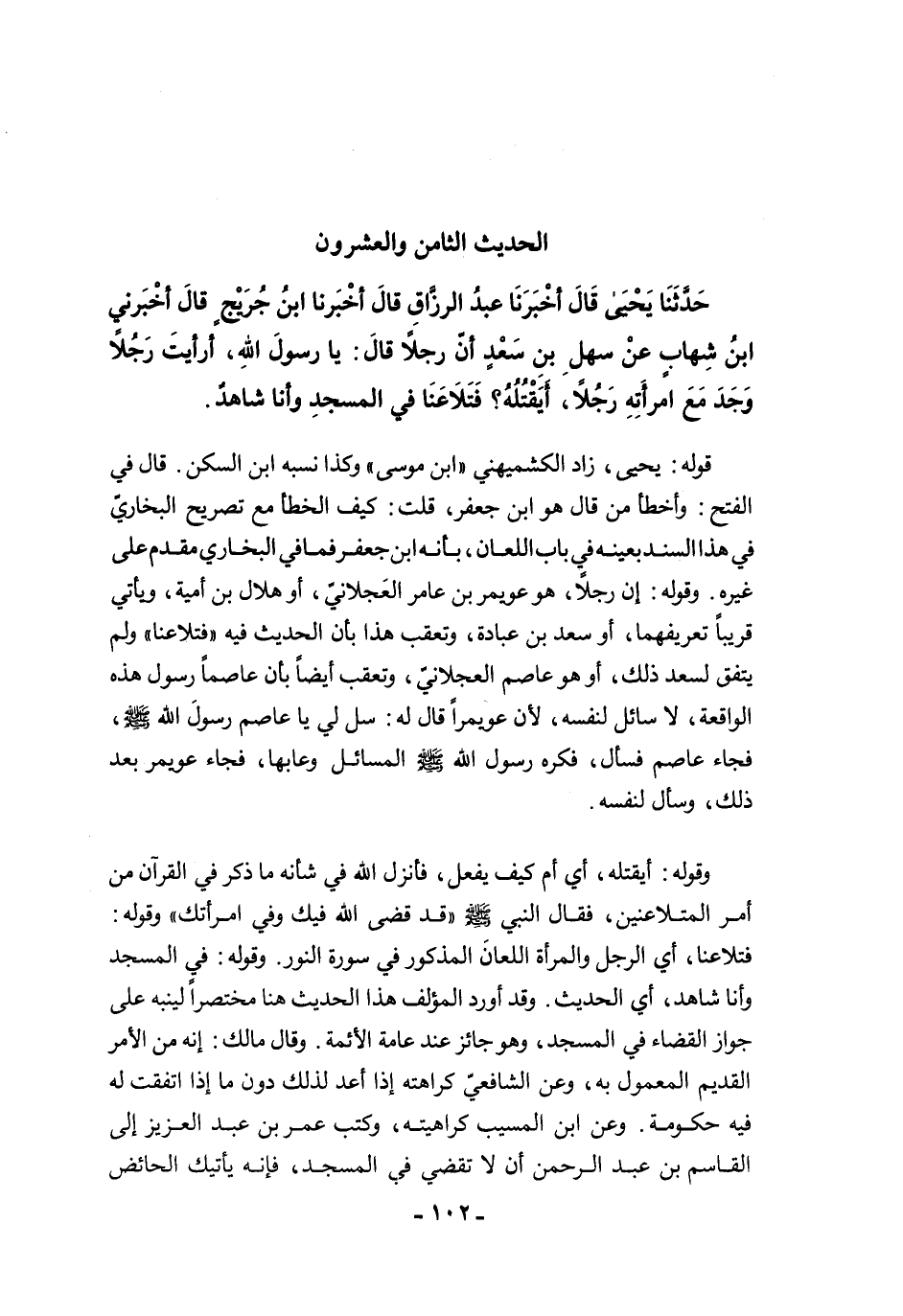 حَدَّثَنَا يَحْيَى قَالَ أَخْبَرَنَا عَبْدُ الرَّزَّاقِ قَالَ أَخْبَرَنَا ابْنُ جُرَيْجٍ قَالَ أَخْبَرَنِي ابْنُ شِهَابٍ عَنْ سَهْلِ بْنِ سَعْدٍ أَنَّ رَجُلاً قَالَ: يَا رَسُولَ اللَّهِ، أَرَأَيْتَ رَجُلاً وَجَدَ مَعَ امْرَأَتِهِ رَجُلاً أَيَقْتُلُهُ؟ فَتَلاَعَنَا فِي الْمَسْجِدِ وَأَنَا شَاهِدٌ.