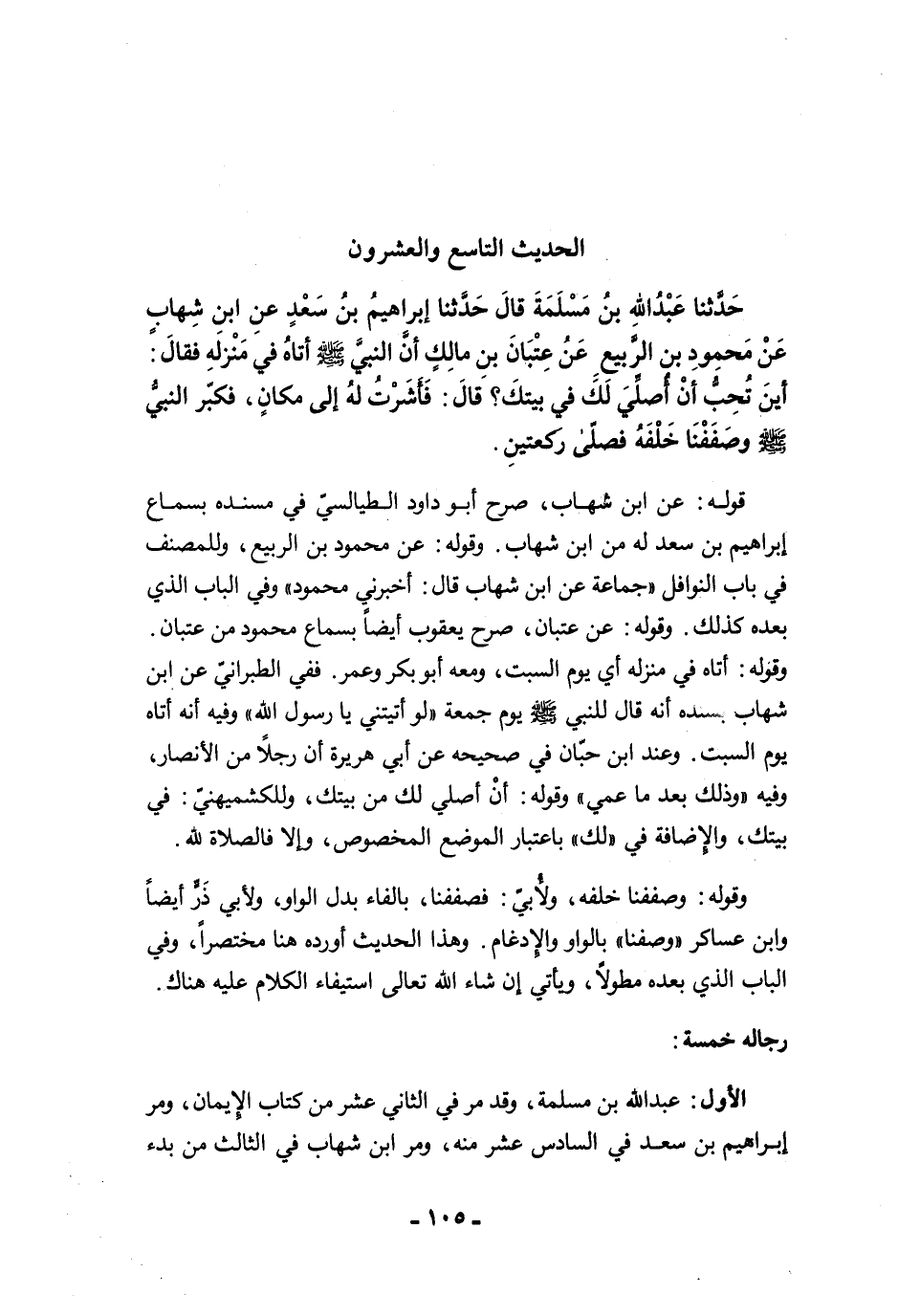 الأول: عبد الله بن مسلمة، وقد مرَّ في الثاني عشر من كتاب الإيمان, ومرَّ إبراهيم بن سعد في السادس عشر منه، ومرَّ ابن شهاب في الثالث من بدء