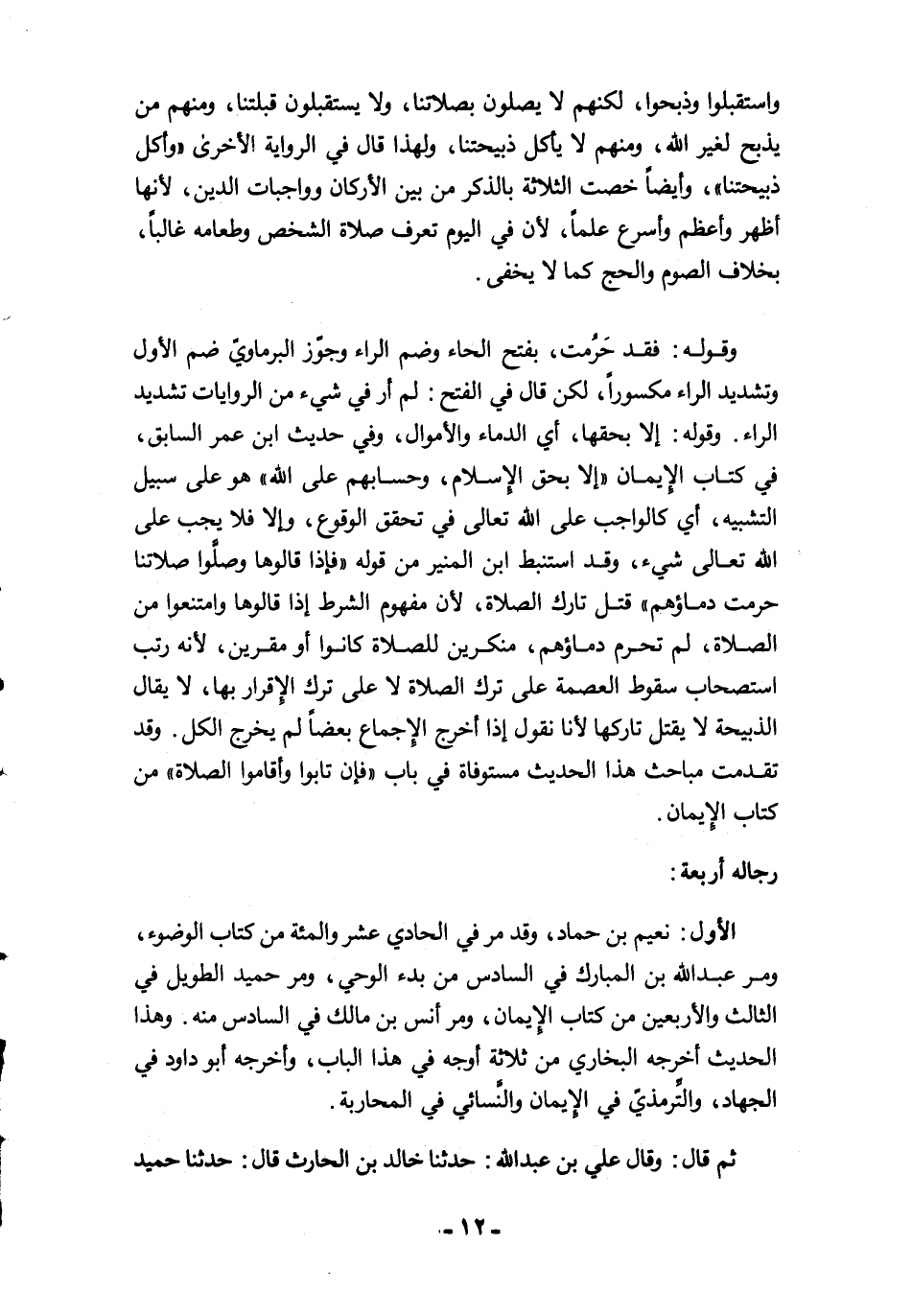الأول: نعيم بن حماد، وقد مر في الحادي عشر والمئة من كتاب الوضوء، ومرّ عبد الله بن المبارك في السادس من بدء الوحي، ومرّ حميد الطويل في الثالث والأربعين من كتاب الإيمان، ومرّ أنس بن مالك في السادس منه. وهذا الحديث أخرجه البخاريّ من ثلاثة أوجه في هذا الباب، وأخرجه أبو داود في الجهاد، والتِّرمذيّ في الإيمان والنَّسائيّ في المحاربة.