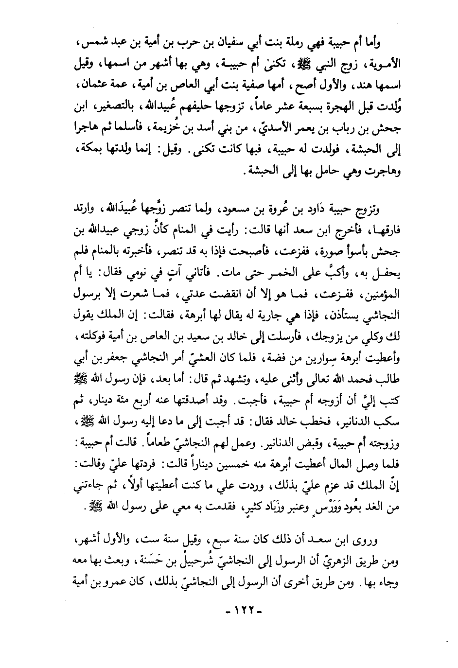 وروى ابن سعد أن ذلك كان سنة سبع، وقيل سنة ست، والأول أشهر، ومن طريق الزهريّ أن الرسول إلى النجاشيّ شُرحبيلُ بن حَسَنة، وبعث بها معه وجاء بها. ومن طريق أخرى أن الرسول إلى النجاشيّ بذلك، كان عمرو بن أمية