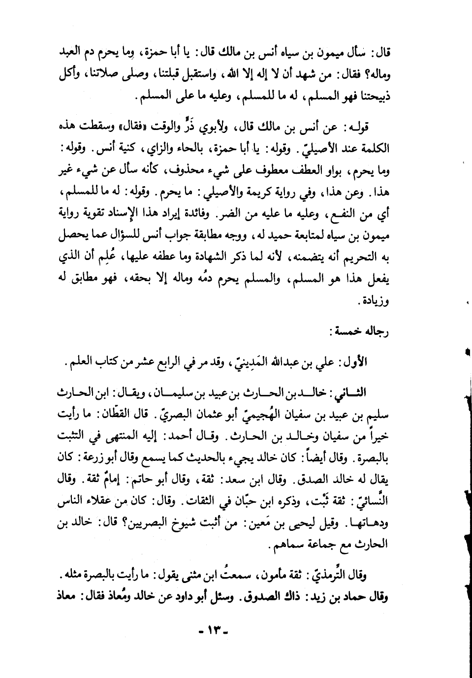 قال: سأل ميمون بن سياه أنس بن مالك قال: يا أبا حمزة، وما يحرم دم العهد وماله؟ فقال: من شهد أن لا إله إلا الله، واستقبل قبلتنا، وصلى صلاتنا، وكل ذبيحتنا فهو المسلم، له ما للمسلم، وعليه ما على المسلم.