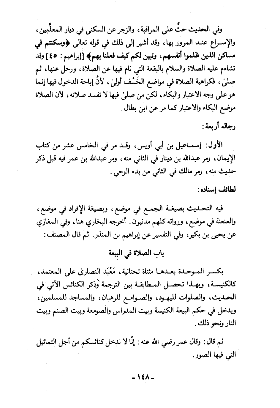 ثم قال: وقال عمر رضي الله عنه: إنّا لا ندخل كنائسكم من أجل التماثيل التي فيها الصور.