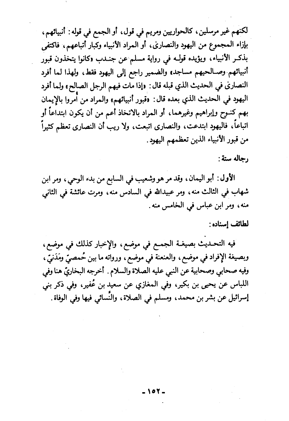 لكنهم غير مرسلين، كالحواريين ومريم في قول، أو الجمع في قوله: أنبيائهم، بإزاء المجموع من اليهود والنصارى، أو المراد الأنبياء وكبار أتباعهم، فاكتفى بذكر الأنبياء، ويؤيده قوله في رواية مسلم عن جندب "كانوا يتخذون قبور أنبيائهم. وصالحيهم مساجد" والضمير راجع إلى اليهود فقط، ولهذا لما أفرد النصارى في الحديث الذي قبله قال: "إذا مات فيهم الرجل الصالح" ولما أفرد اليهود في الحديث الدي بعده قال: "قبور أنبيائهم" والمراد من أُمروا بالإيمان بهم كنوح وإبراهيم وغيرهما، أو المراد بالاتخاذ أعم من أن يكون ابتداعًا أو اتباعًا، فاليهود ابتدعت، والنصارى اتبعت، ولا ريب أن النصارى تعظم كثيرًا من قبور الأنبياء الذين تعظمهم اليهود.