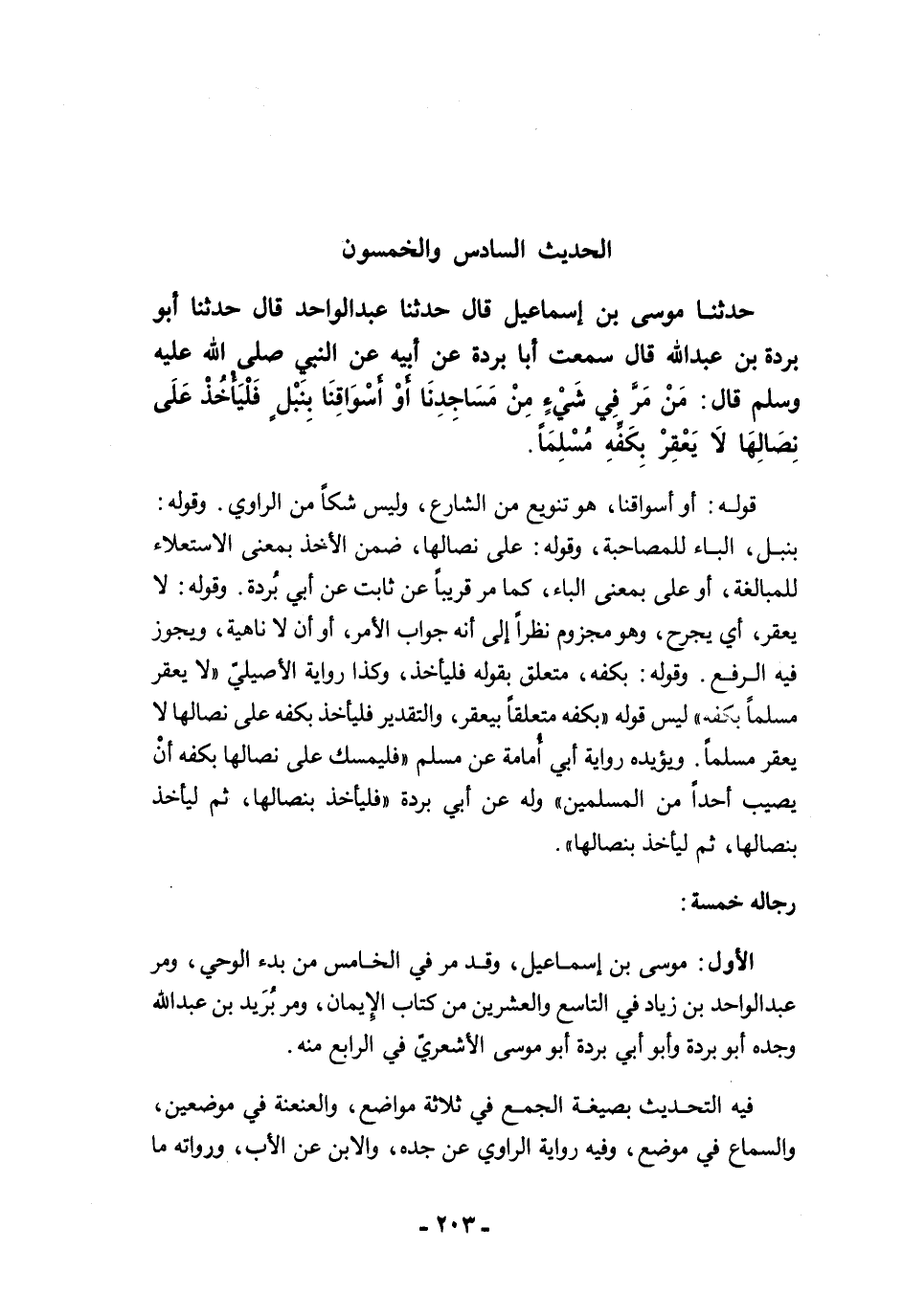 الأول: موسى بن إسماعيل، وقد مرَّ في الخامس من بدء الوحي، ومرَّ عبد الواحد بن زياد في التاسع والعشرين من كتاب الإيمان" ومر بُرَيد بن عبد الله وجده أبو بردة وأبو أبي بردة أبو موسى الأشعريّ في الرابع منه.