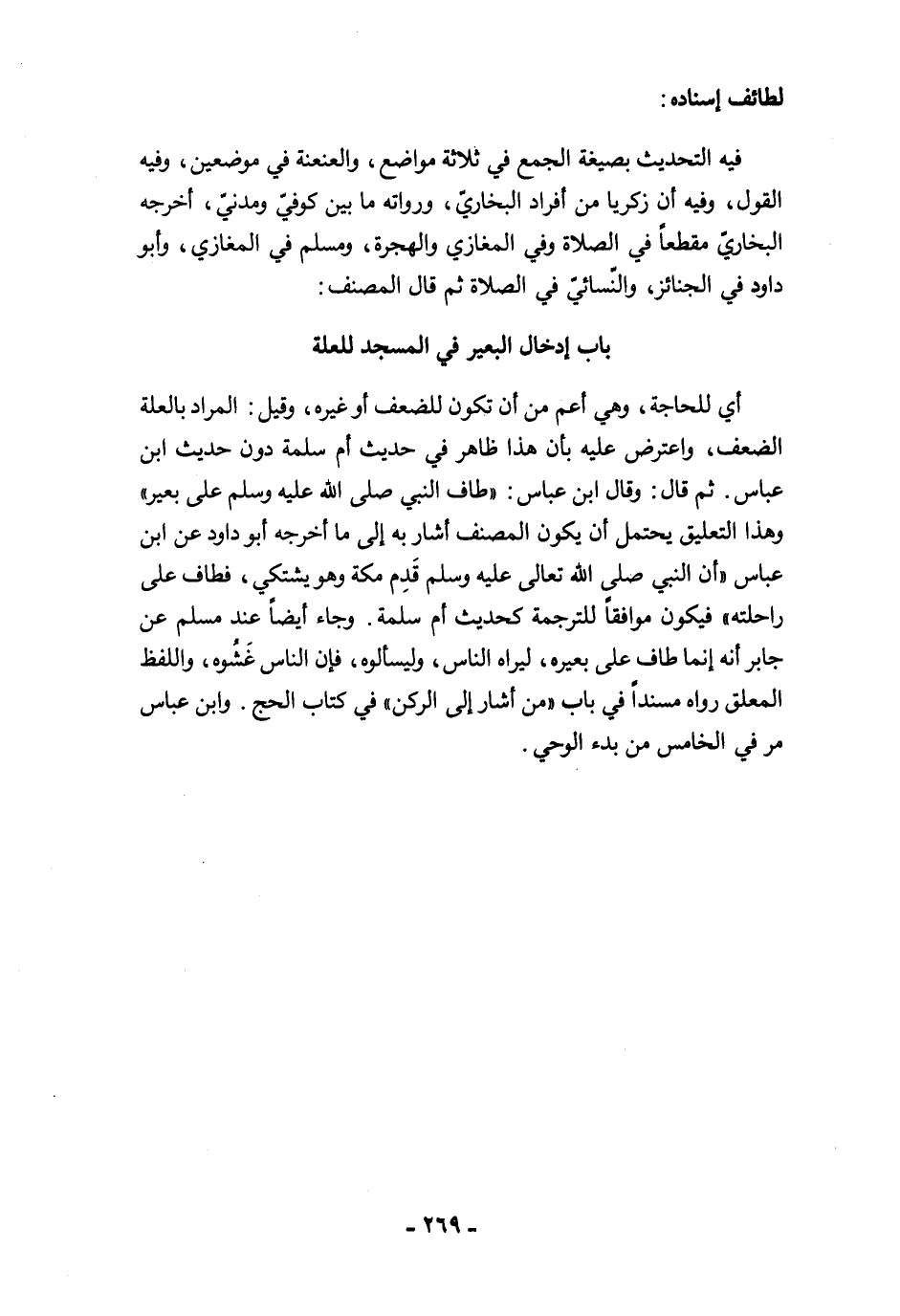 باب إدخال البعير في المسجد للعلة