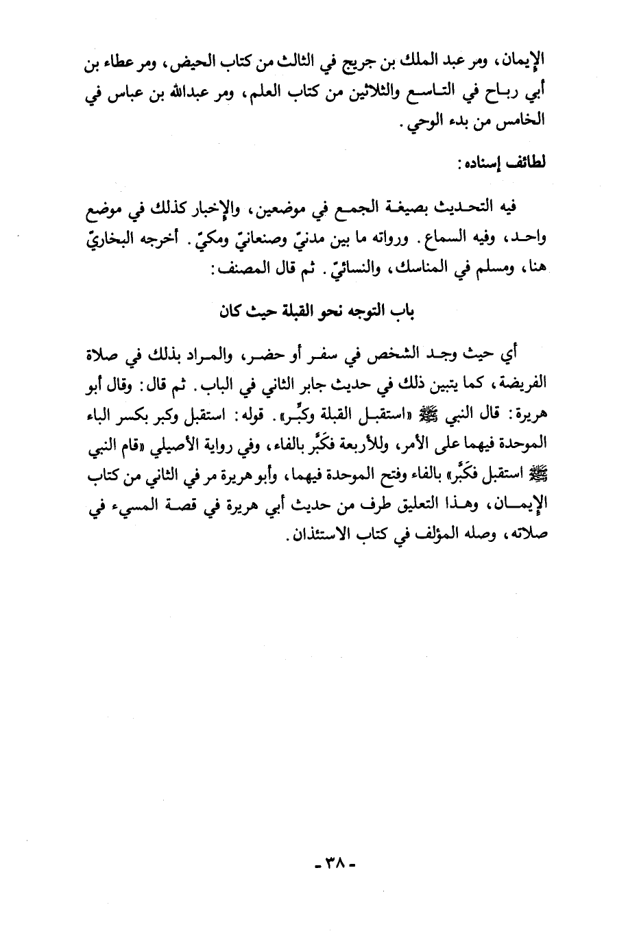الإيمان، ومرّ عبد الملك بن جريج في الثالث من كتاب الحيض، ومرّ عطاء بن أبي رباح في التاسع والثلاثين من كتاب العلم، ومرّ عبد الله بن عباس في الخامس من بدء الوحي.