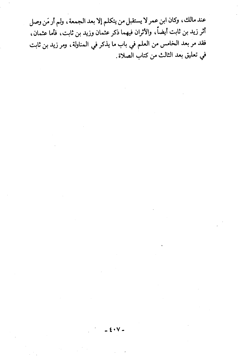 عند مالك، وكان ابن عمر لا يستقبل من يتكلم إلا بعد الجمعة، ولم أر مَن وصل أثر زيد بن ثابت أيضًا، والأثران فيهما ذكر عثمان وزيد بن ثابت، فأما عثمان، فقد مرَّ بعد الخامس من العلم في باب ما يذكر في المناولة، ومرَّ زيد بن ثابت في تعليق بعد الثالث من كتاب الصلاة.