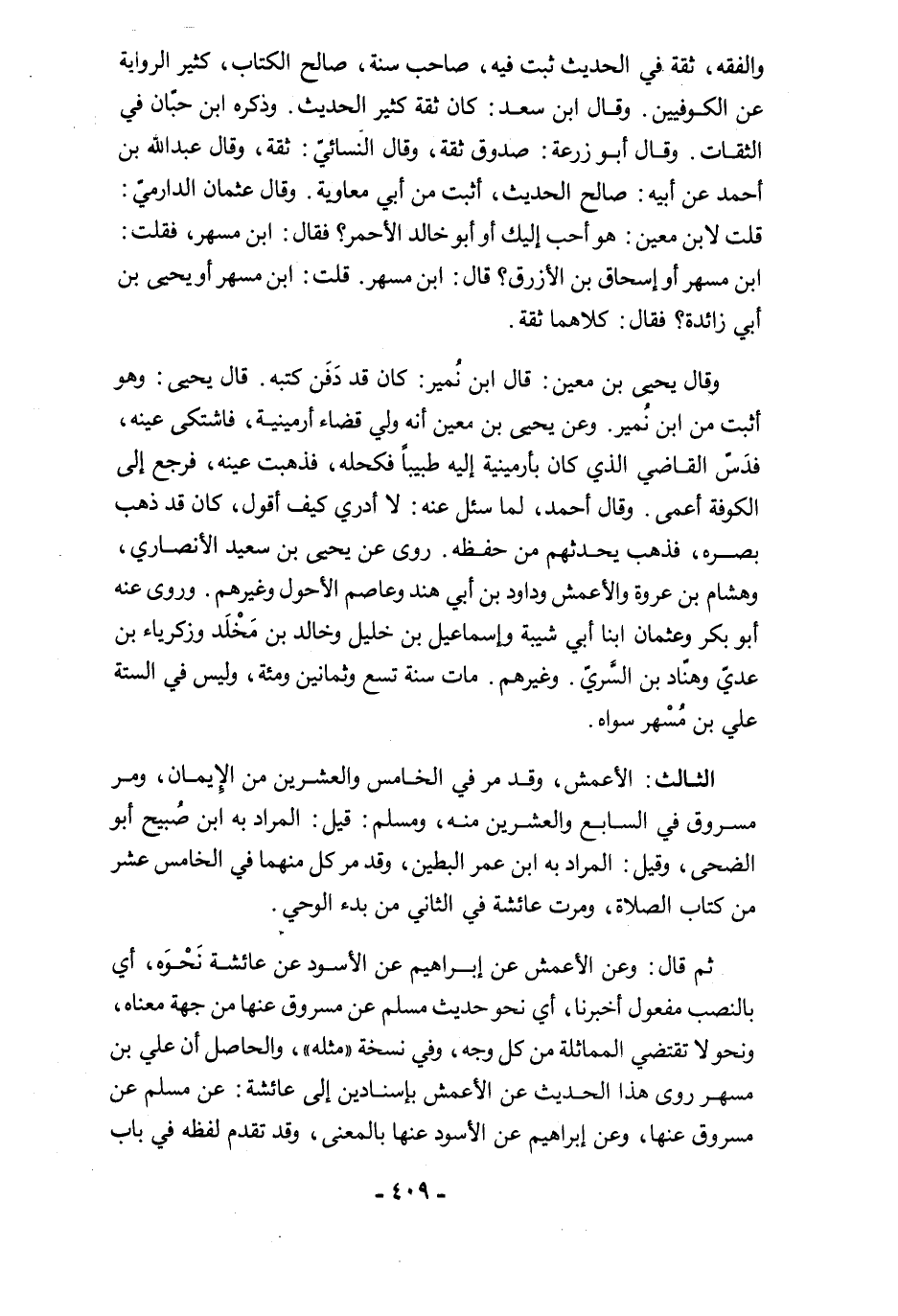 الثالث: الأعمش، وقد مرّ في الخامس والعشرين من الإيمان، ومرَّ مسروق في السابع والعشرين منه، ومسلم: قيل: المراد به ابن صُبيح أبو الضحى، وقيل: المراد به ابن عمر البطين، وقد مر كل منهما في الخامس عشر من كتاب الصلاة، ومرت عائشة في الثاني من بدء الوحي.