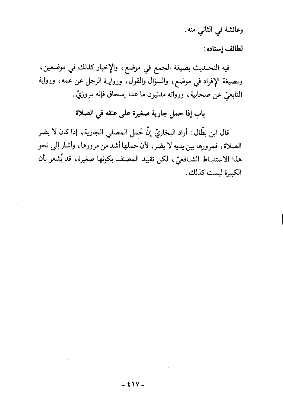باب إذا حمل جارية صغيرة على عنقه في الصلاة