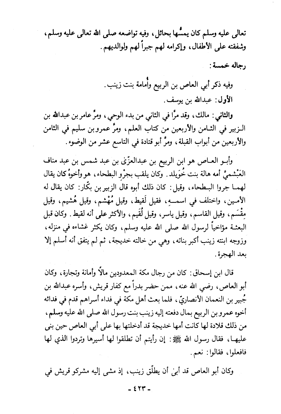 وفيه ذكر أبي العاص بن الربيع وأُمامة بنت زينب.