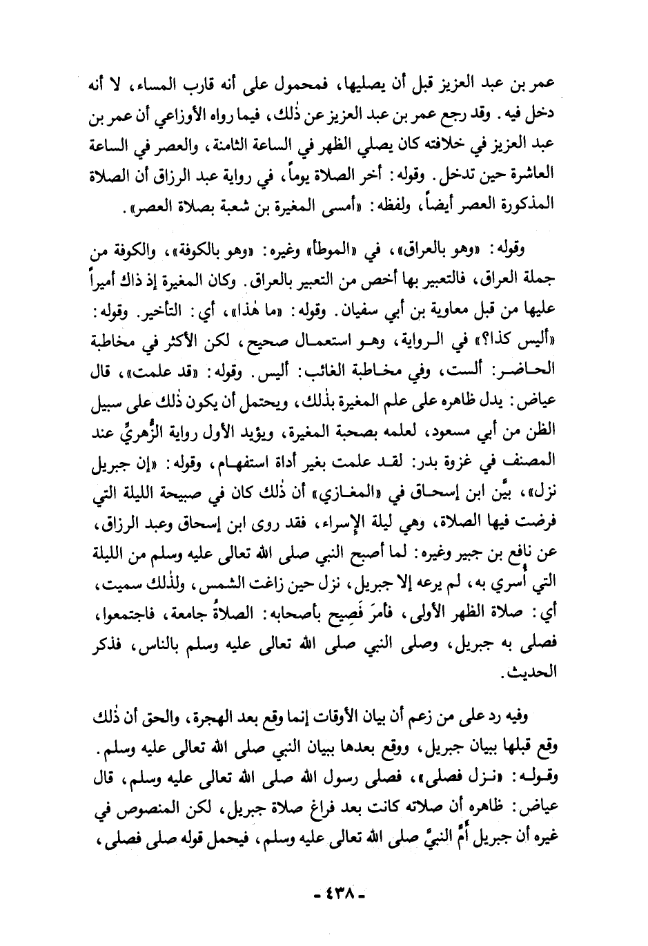 عمر بن عبد العزيز قبل أن يصليها، فمحمول على أنه قارب المساء، لا أنه دخل فيه. وقد رجع عمر بن عبد العزيز عن ذلك، فيما رواه الأوزاعي أن عمر بن عبد العزيز في خلافته كان يصلي الظهر في الساعة الثامنة، والعصر في الساعة العاشرة حن تدخل. وقوله: أخر الصلاة يومًا، في رواية عبد الرزاق أن الصلاة المذكورة العصر أيضًا، ولفظه: "أمسى المغيرة بن شعبة بصلاة العصر".