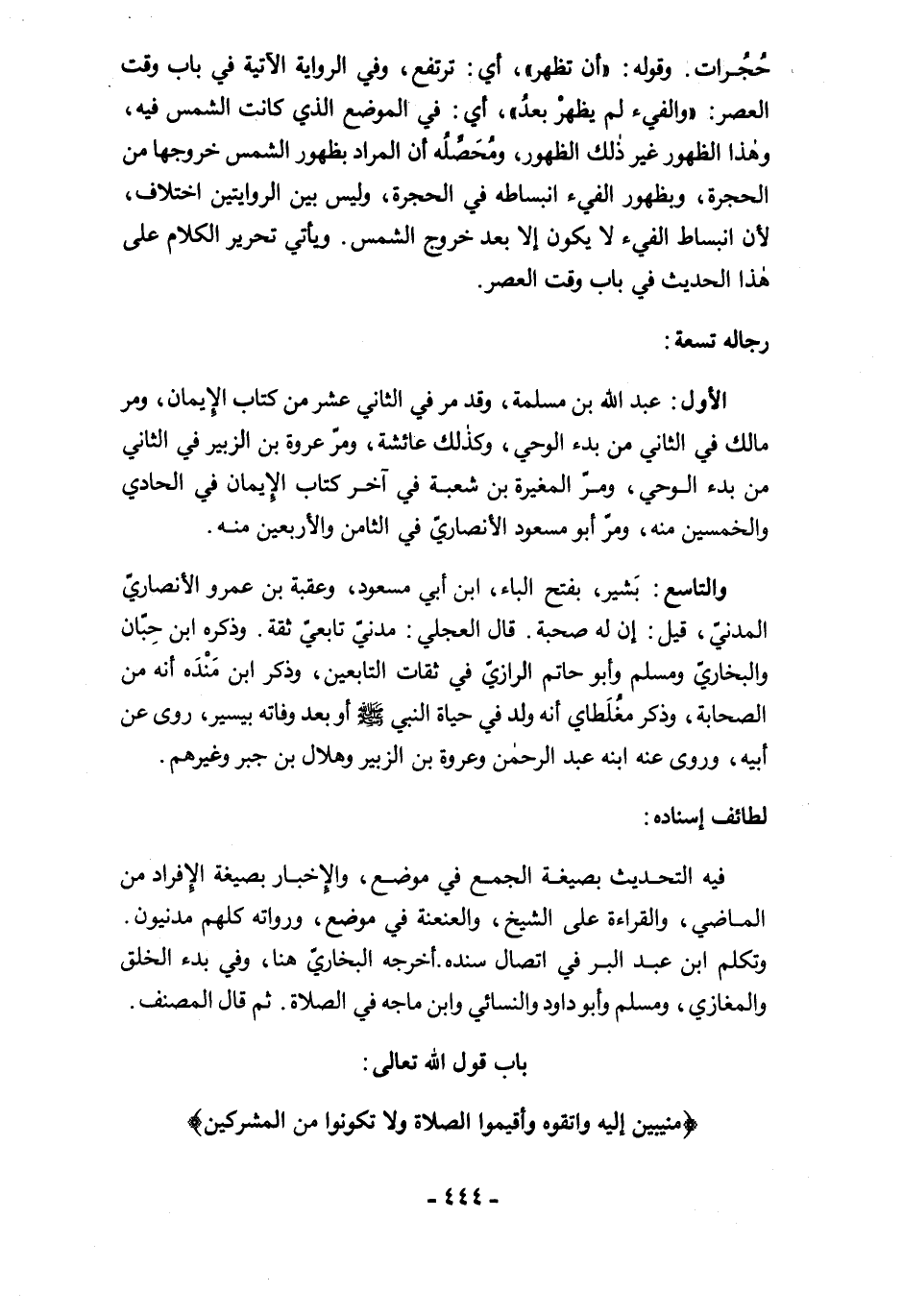 باب قول الله تعالى: {مُنِيبِينَ إِلَيْهِ وَاتَّقُوهُ وَأَقِيمُوا الصَّلَاةَ وَلَا تَكُونُوا مِنَ الْمُشْرِكِينَ}