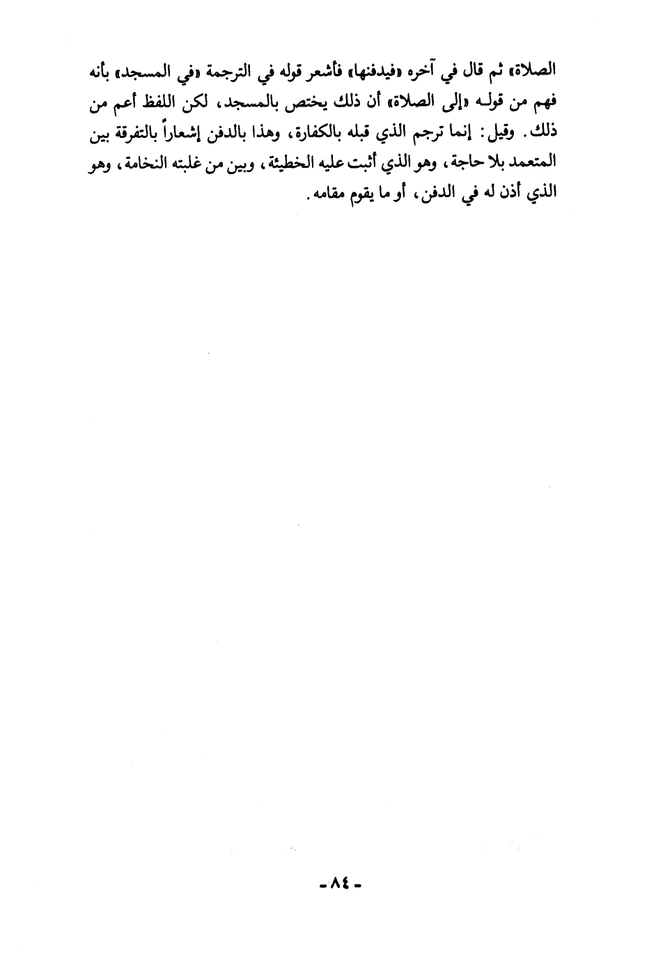 الصلاة" ثم قال في آخره "فيدفنها" فأشعر قوله في الترجمة "في المسجد" بأنه فهم من قوله "إلى الصلاة" أن ذلك يختص بالمسجد، لكن اللفظ أعم من ذلك. وقيل: إنما ترجم الذي قبله بالكفارة، وهذا بالدفن إشعارًا بالتفرقة بين المتعمد بلا حاجة، وهو الذي أثبت عليه الخطيئة، وبين من غلبته النخامة، وهو الذي أذن له في الدفن، أو ما يقوم مقامه.