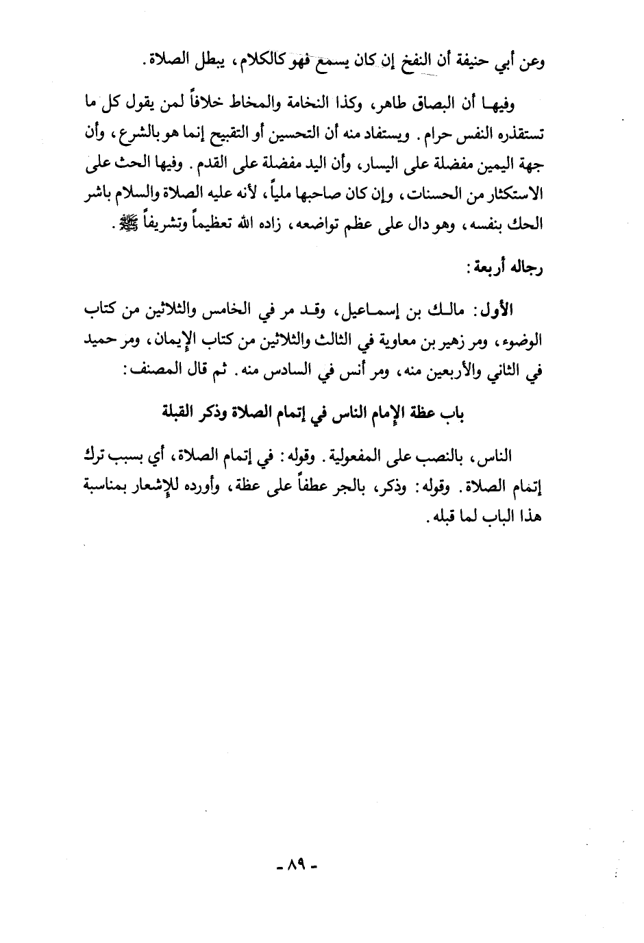باب عظة الإِمام الناس في إتمام الصلاة وذكر القبلة