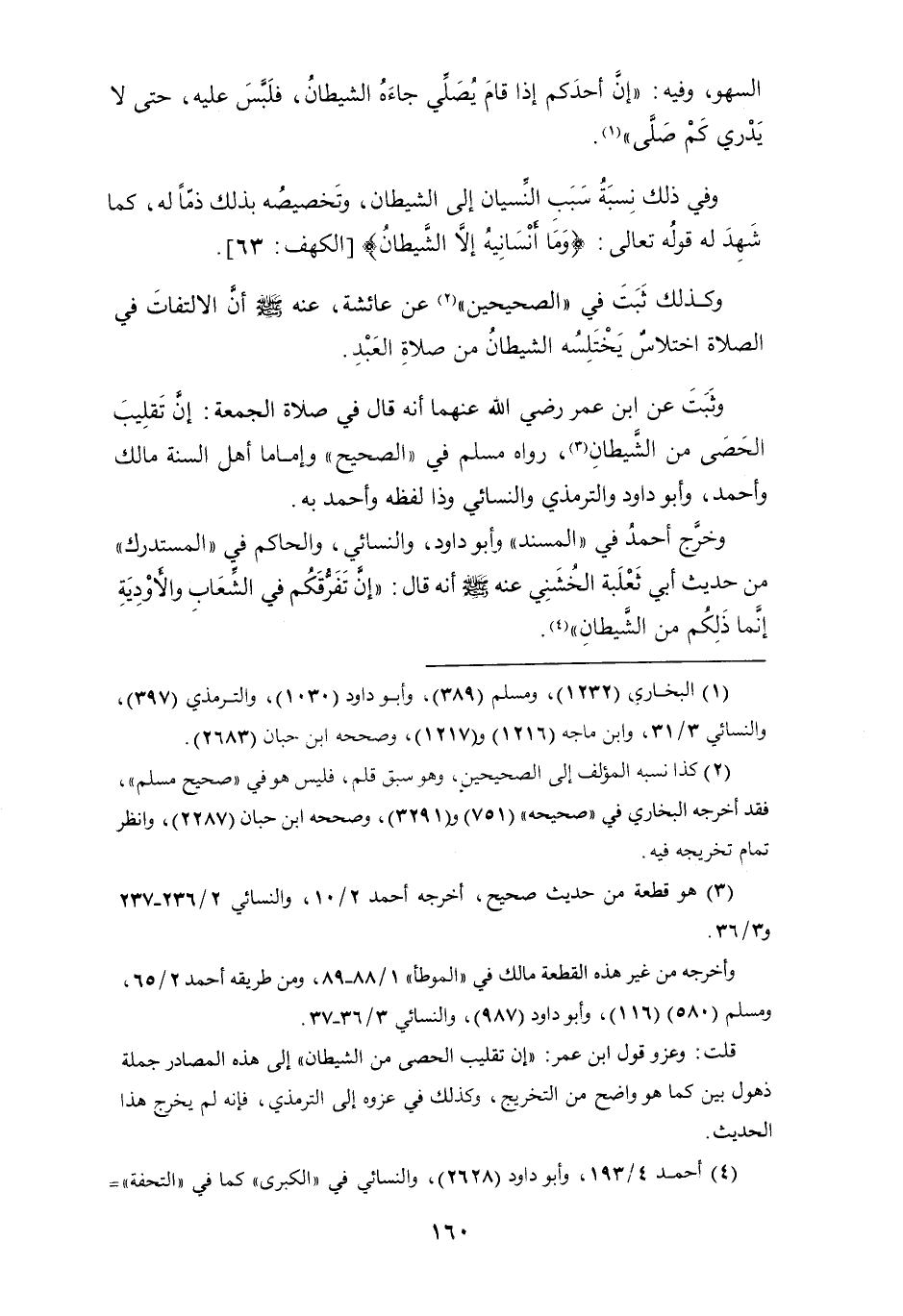 قلت: وعزو قول ابن عمر: " إن تقليب الحصى من الشيطان " إلى هذه المصادر جملة ذهول بين كما هو واضح من التخريج، وكذلك في عزوه إلى الترمذي، فإنه لم يخرج هذا الحديث.