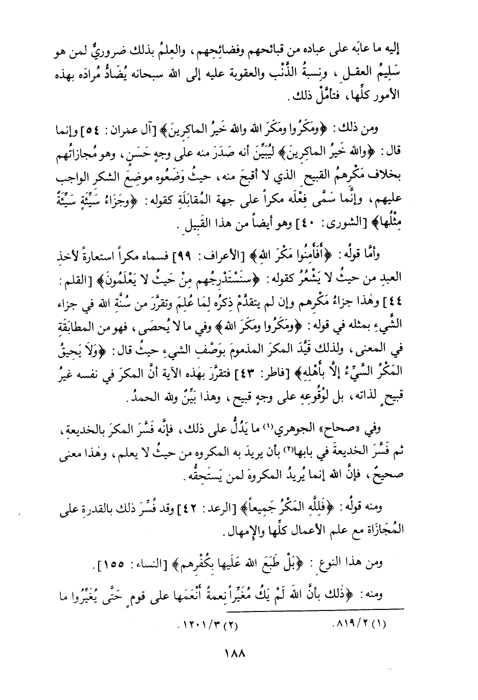 وفي " صحاح " الجوهري (¬1) ما يدل على ذلك، فإنه فَسَّرَ المكر بالخديعة، ثم فَسَّرَ الخديعة في بابها (¬2) بأن يريد به المكروه من حيث لا يعلم، وهذا معنى صحيحٌ، فإن الله إنما يريد المكروه لمن يستحقه.