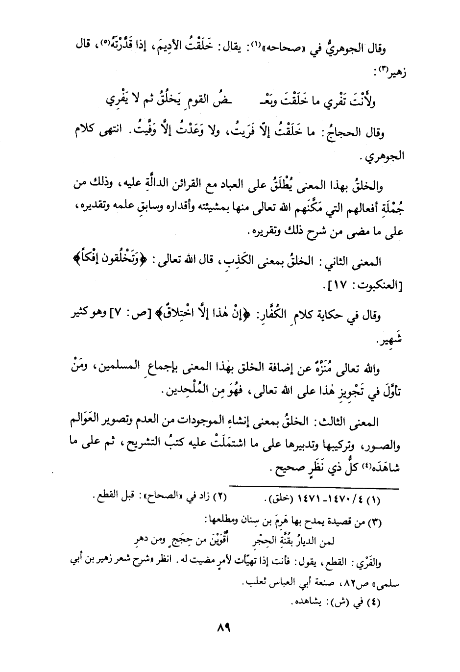 وقال الجوهري في " صحاحه " (¬1): يقال: خلقتُ الأديم، إذا قدَّرتَهُ (¬2)، قال زهير (¬3):