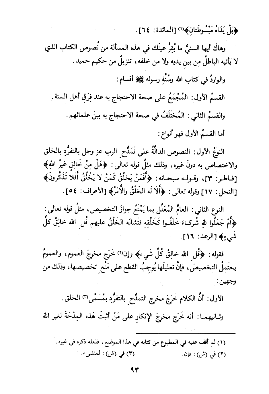 والوارد في كتاب الله وسنة رسوله - صلى الله عليه وسلم - أقسام: