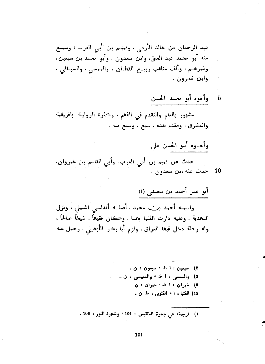 واسمه: أحمد بن محمد أصله أندلسي إشبيلي، ونزل المهدية، وعليه دارت الفتيا بها وكان فقيهاً صالحاً، وله رحلة دخل فيها العراق، ولزم أبا بكر الأبهري وحمل عنه