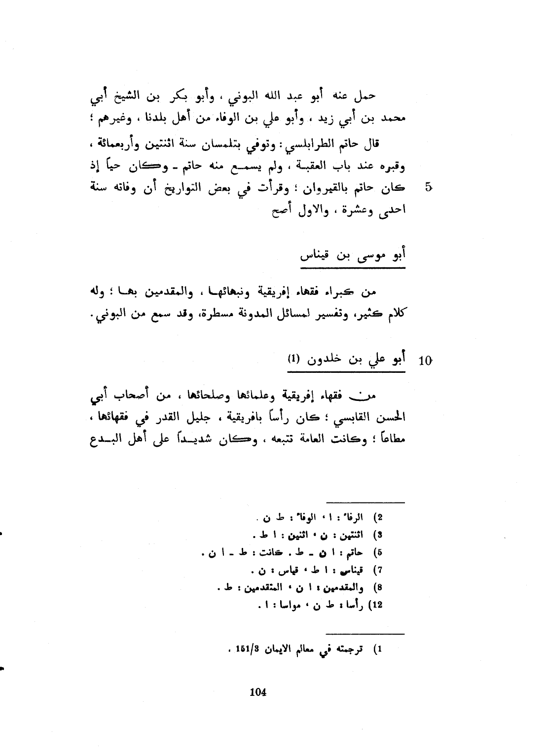 من فقهاء إفريقية وعلمائها وصلحائها، من أصحاب أبي الحسن القابسي، كان قد نشأ بإفريقية، جليل القدر في فقهائها، مطاعاً. وكانت العامة تتبعه. وكان شديداً على أهل البدع