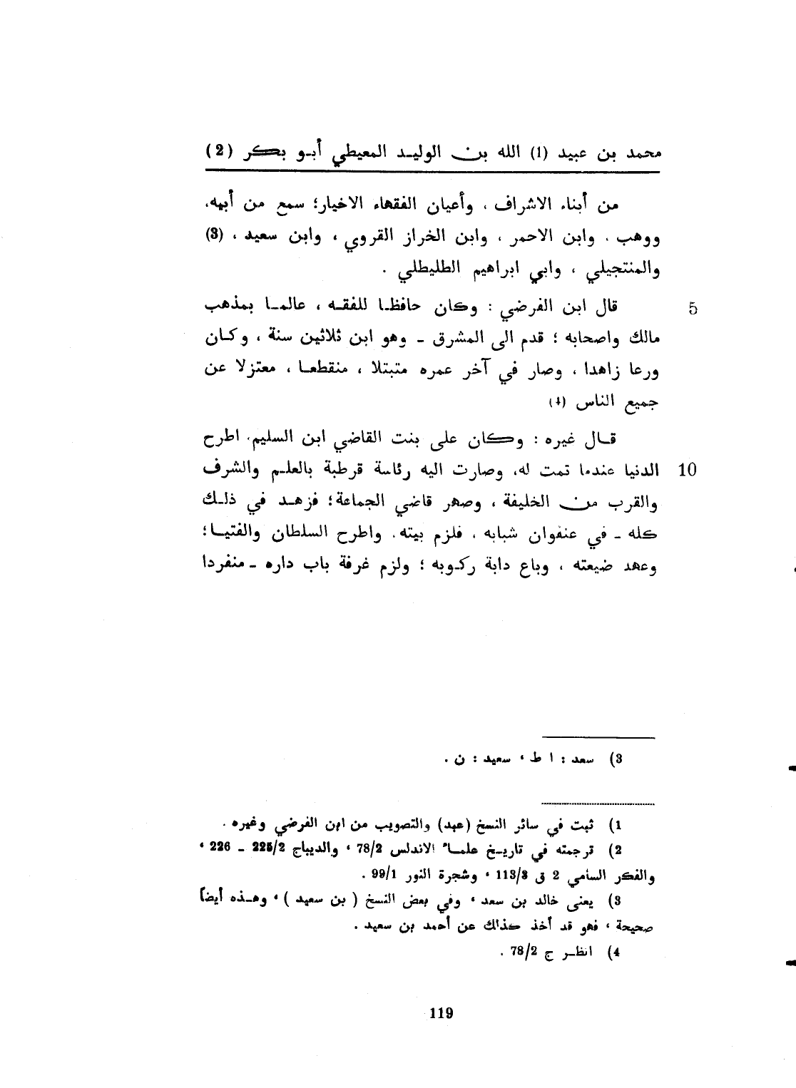 أبو بكر، من أبناء الأشراف وأعيان الفقهاء الأخيار. سمع من أبيه ووهب وابن الخراز القروي، وابن سعيد، والمحيلي، وأبي ابراهيم الطليطلي، قال ابن الفرضي: وكان حافظاً للفقه، عالماً بمذهب مالك وأصحابه. قدم الى الشورى وهو ابن ثلاثين سنة. وكان ورعاً زاهداً وصار في آخر عمره متبتلاً منقطعاً معتزلاً عن جميع الناس. قال غيره: وكان ثبتاً سليماً طرح الدنيا عندما تمت له. وصارت إليه رئاسة قرطبة بالعلم والشرف والقرب من الخليفة، وصيّر قاضي الجماعة فزهد في ذلك كله في عنفوان شبابه، فلزم بيته وأطرح السلطان والفتيا، وعهد ضيعته، وباع دابة ركوبه، ولزم غرفة باب داره منفراً