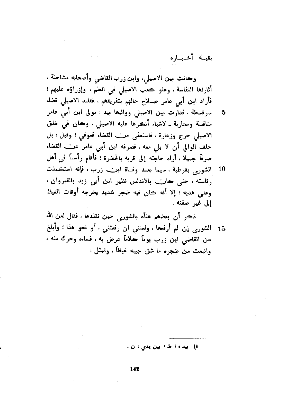 وكانت بين الأصيلي وابن زرب القاضي، وأصحابه مشاحنة، أثارتها النفاسة، وعلو كعب الأصيلي في العلم، وأزراؤه عليهم، فأراد ابن أبي عامر صلاح حالهم بتفريقهم، فقلد الأصيلي قضاء سرقسطة، فدارت بين الأصيلي وواليها بين يدي ابن أبي عامر منافسة، ومحارجة لأشياء أنكرها عليه الأصيلي. وكان في خلق الأصيلي حرج وزعارة، فاستعفى من القضاء فعوفي، وقيل بل حلف الوالي أن لا يلي معه. فصرفه ابن أبي عامر عن القضاء، صرفاً جميلاً. وأراد حاجته الى قربه بالحضرة. فأقام رأساً في أهل الشورى بقرطبة، سيما بعد وفاة ابن زرب. فإنه استكملت رئاسته، حتى كان بالأندلس نظير ابن أبي زيد بالقيروان وعلى هديه، إلا أنه كان فيه ضجر شديد، يخرجه أوقات القيظ الى غير صفته. ذكر بعضهم أنه هنأه بالشورى حين تقلدها، فقال: لعن الله الشورى إن لم أرفعها، ولعنني إن رفعتني، ونحو هذا. وأبلغ عن القاضي ابن زرب رحمه الله يوماً كلاماً، عرض به فساءه، وحرك منه وانبعث من ضجره، ما شق جيبه غيظاً وتمثل: