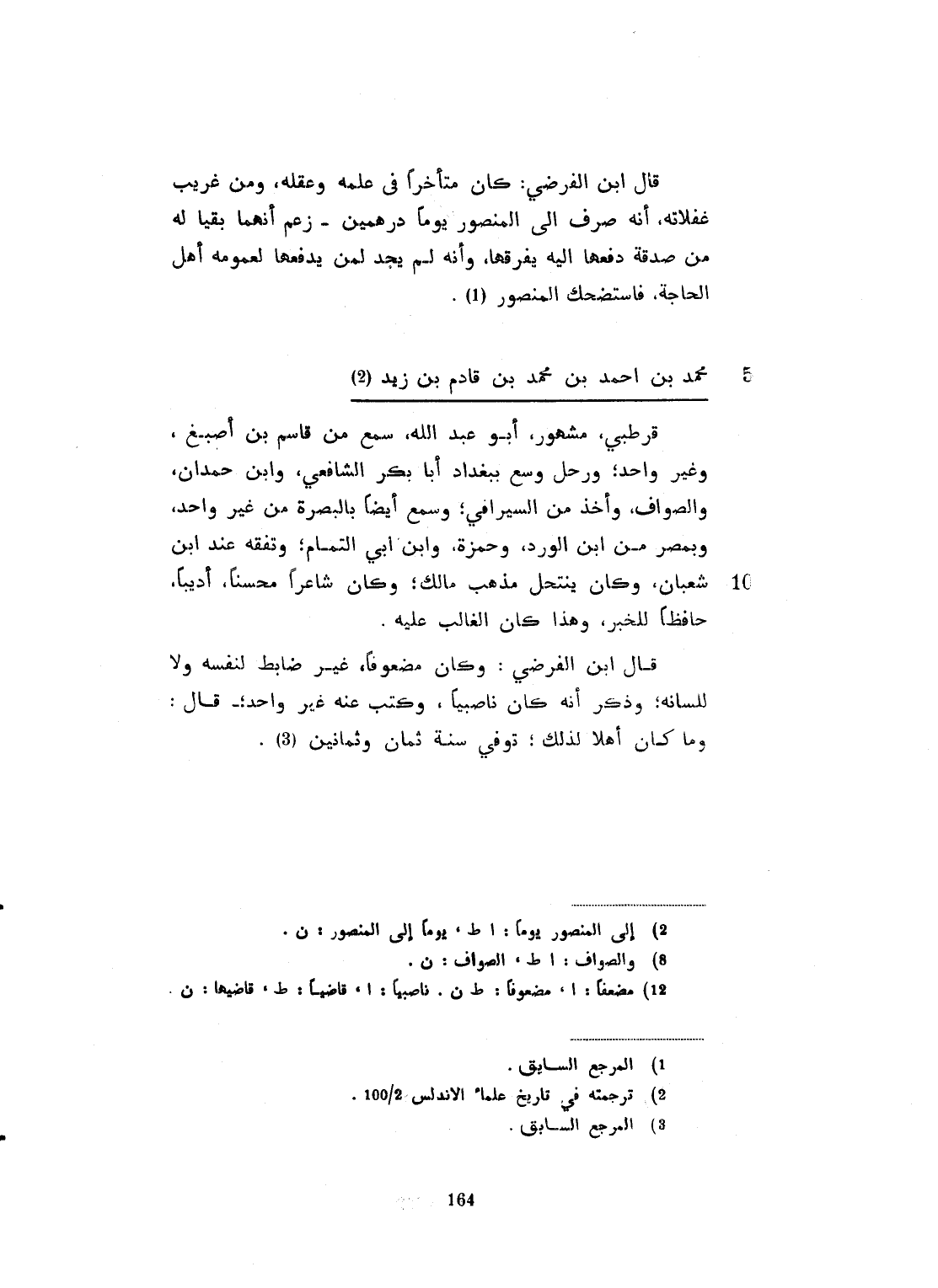 قرطبي مشهور، أبو عبد الله. سمع من قاسم بن أصبغ، وغير واحد. ورحل فسمع ببغداد أبا بكر الشافعي، وابن حمدان، والصواف. وأخذ عن السيرافي. وسمع أيضاً بالبصرة من غير واحد. وبمصر من ابن الورد، وحمزة، وابن أبي التمام. وتفقه عند ابن شعبان. وكان ينتحل مذهب مالك رضي الله عنه. وكان شاعراً محسناً حافظاً للخبر. وهذا كان الغالب عليه. قال ابن الفرضي رحمه الله: وكان مضعوفاً، غير ضابط لنفسه، ولا للسانه. وذكر أنه كان قاضياً. وكتب عنه غير واحد. قال: وكان أهلاً لذلك. توفي سنة ثمانين وثلاثمائة.