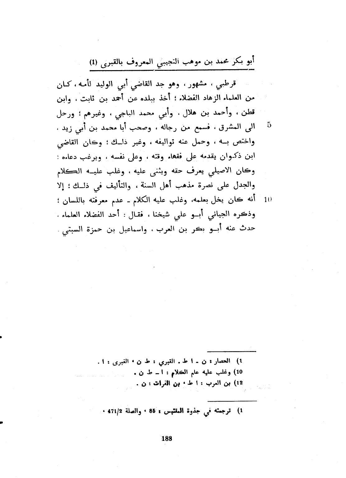 المعروف بالقبري. قرطبي مشهور، وهو جد القاضي أبو الوليد الباجي كان من العلماء الزهّاد الفضلاء. أخذ ببلده عن أحمد بن ثابت، وابن قطن وأحمد بن هلال، وأبي محمد الباجي وغيرهم. ورحل الى المشرق فسمع من رجاله، وصحب أبا محمد ابن أبي زيد رحمه الله، واختص به وحمل عنه تواليفه وغير ذلك، وكان القاضي ابن ذكوان يقدمه على فقهاء وقته وعلى نفسه ويرغب دعاءه. وكان الأصيلي يعرف حقه ويثني عليه، وغلب عليه الكلام والجدل على نصرة مذهب أهل السنّة، والتواليف في ذلك، إلا أنه كان يخل بعلمه عدم معرفته اللسان. وذكره الجياني أبو علي شيخنا فقال: أحد الفضلاء العلماء حدث عنه أبو بكر بن الغراف، واسماعيل بن حمزة السبتي.