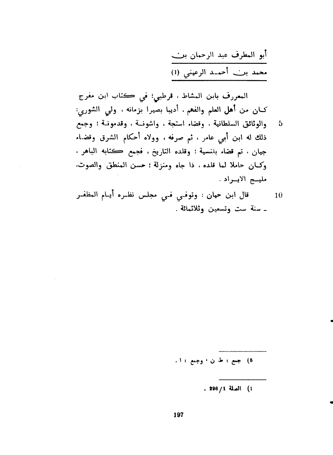 المعروف بابن المشاط. قرطبي. في كتاب ابن مفرج: كان من أهل العلم والفهم أديباً بصيراً بزمانه. وليَ الشورى والوثائق للسلطان، وقضاء استجة، واشبونه وقرمونه. ولاّه جميع ذلك ابن أبي عامر. ثم صرفه عنه وولاه أحكام السوق، وقضاء جيان، ثم قضاء بلنسية، وقلده التاريخ، فجمع كتابه الباهر، وكان حاملاً لما قلده، ذا جاه ومنزلة. حسن المنطق والصوت مليح الإيراد. قال ابن حيان: وتوفي في مجلس نظره أيام المظفر سنة ست وتسعين وثلاثماية.