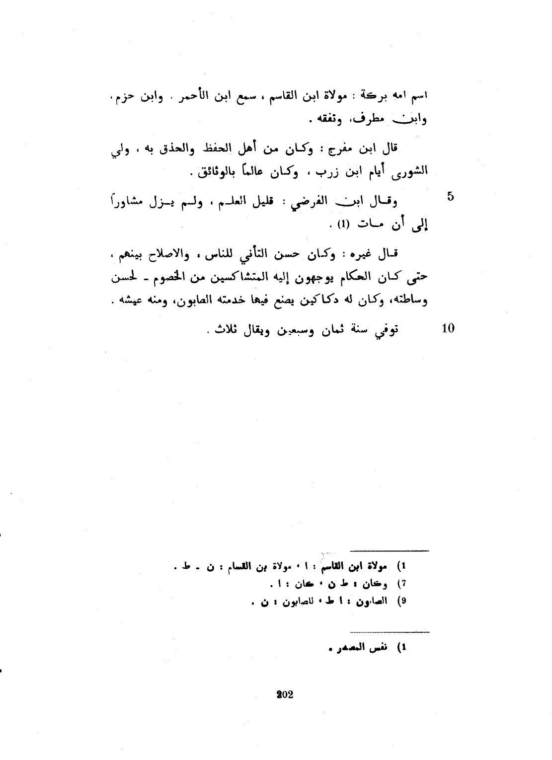 اسم أمة بركة مولاة ابن القاسم سمع ابن الأحمر، وابن حزم، وابن مطرف، وتفقه. قال ابن مفرج: وكان من أهل الحفظ للفقه والحذق به، وليَ الشورى أيام ابن زرب. وكان عالماً بالوثائق، وقال ابن الفرضي: كان قليل العلم ولم يزل مشاوراً الى أن مات. قال غيره: كان حسن التأني للناس والإصلاح بينهم، حتى كان الحكام يوجهون إليه المتشاكين من الخصوم لحسن وساطته، وكان له دكاكين يصنع فيها خدمته الصابون، ومنه عيشه. توفي في سنة ثمان وسبعين وثلاثماية ويقال ثلاث.