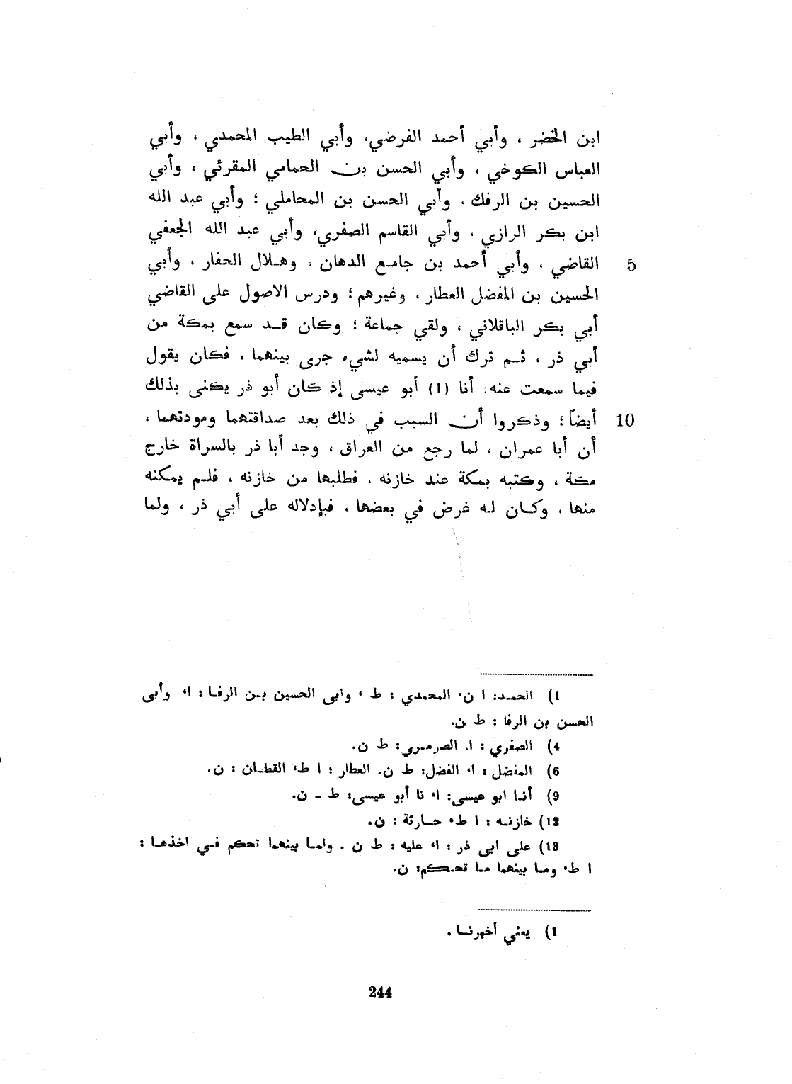 وأبي الحسين ابن الحمامي المقري، وأبي الحسن ابن الرفاء، وأبي الحسن بن الخضر، وأبي أحمد الفرضي، وأبي الطيب المجد، وأبي العباس الكرخي ابن المحاملي، وأبي عبد الله بن بكران الرازي، وأبي القاسم الضريري، وأبي عبد الله الجعفي القاضي، وأبي أحمد بن جامع الدهان، وهلال الحفار، وأبي الحسن ابن الفضل العطار، وغيرهم. ودرس الأصول على القاضي أبي بكر الباقلاني، ولقي جماعة. وكان قد سمع بمكة من أبي ذر. ثم ترك أن يسميه لشيء جرى بينهما. فكان يقول: فيما سمعت عنه. وذكروا أن السبب في ذلك بعد صداقتهما ومودتهما، أن أبا عمران لما رجع من العراق، وجد أبا ذر بالفرات خارج مكة، وكتبه بمكة عند جارته، فطلبها من جارته، فلم تمكنه. وكان له غرض في بعضها. فبإدلاله وما