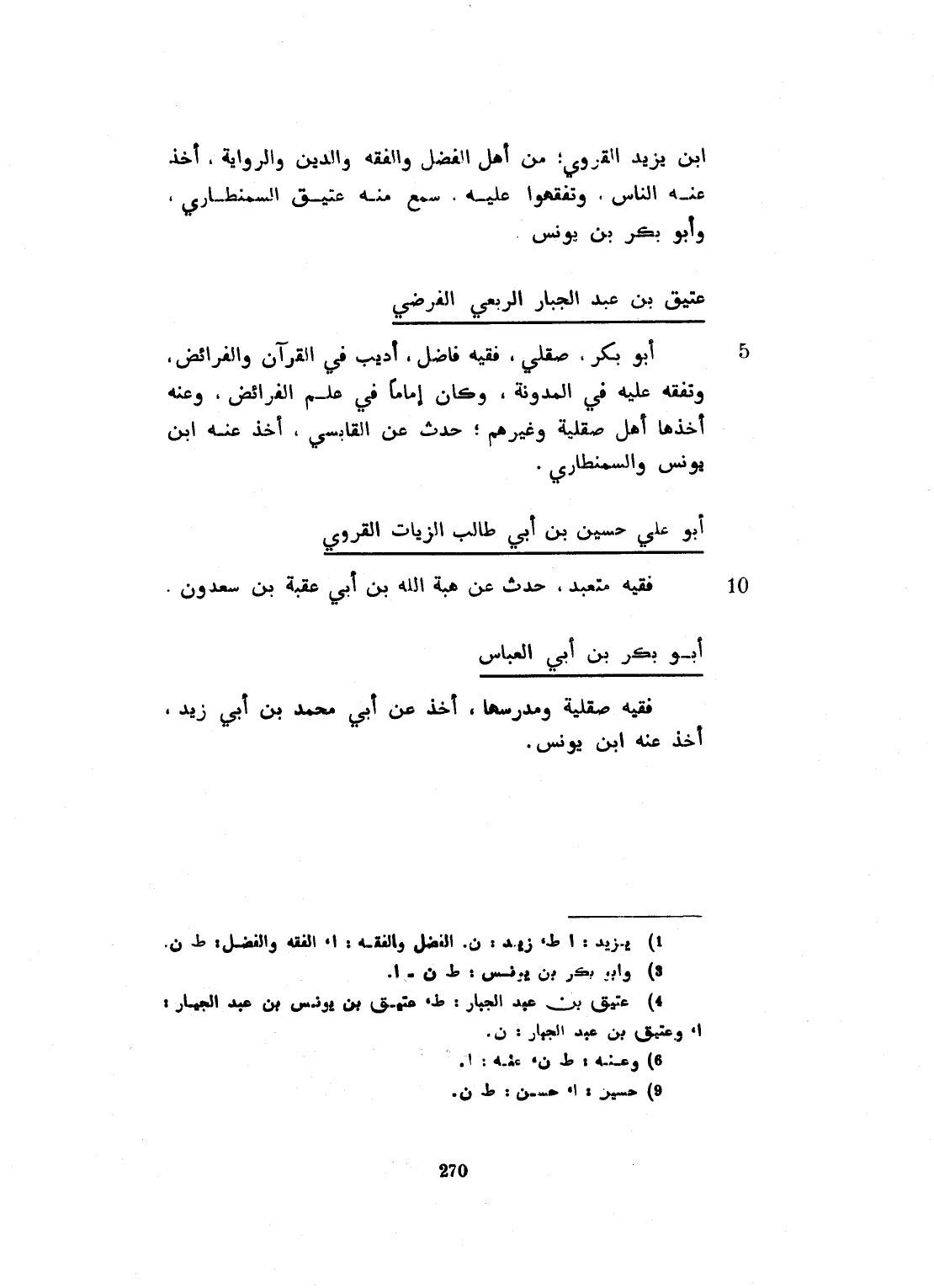 بن يزيد القروي، من أهل الفقه والفضل والدين، والرواية. أخذ عنه الناس، وتفقهوا عليه. سمع منه عتيق السمنطاري، وأبو بكر ابن يونس، وعتيق بن عبد الجبار، الربعي، الفرضي.