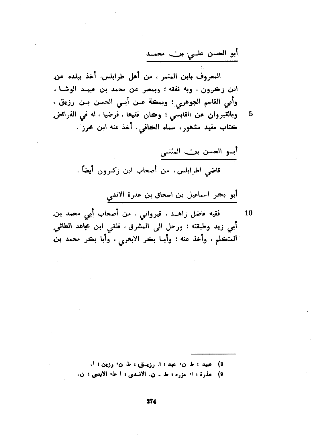 فقيه فاضل زاهد قيرواني. من أصحاب أبي محمد ابن أبي زيد، وطبقته. ورحل الى المشرق فلقي ابن مجاهد الطائي المتكلم، وأخذ عنه. وأبا بكر الأبهري، وأبا بكر محمد بن