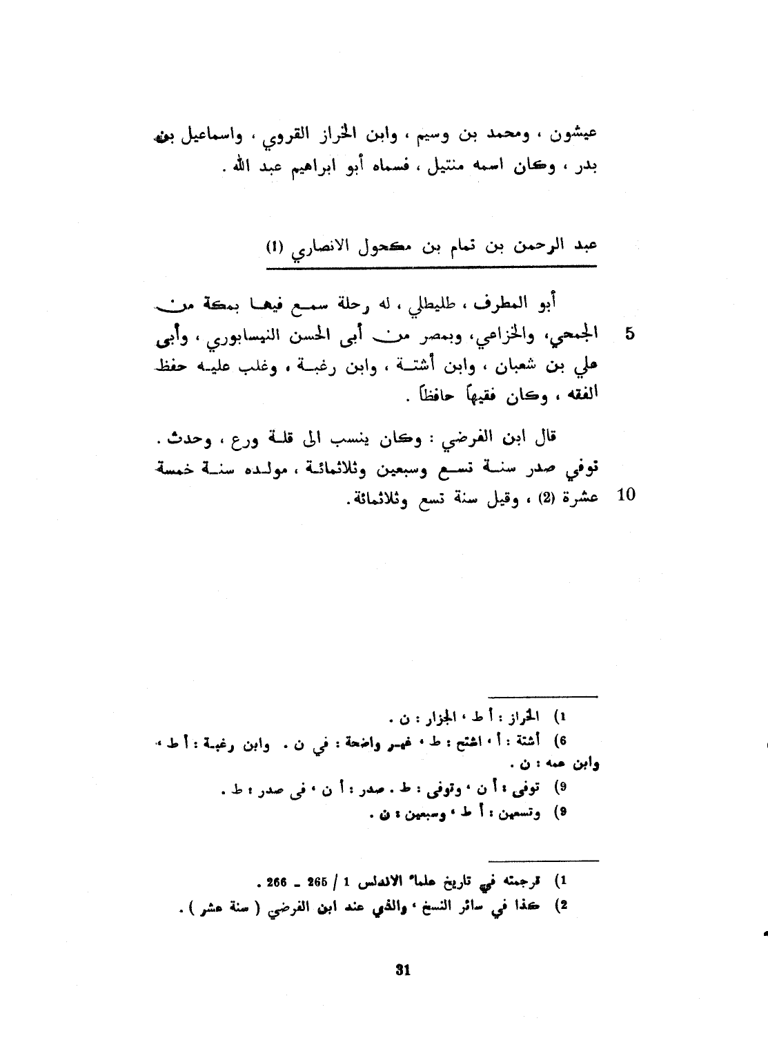 أبو المطرف. طليطلي. له رحلة سمع فيها بمكة من الجمحي، والخزاعي، وبمصر من أبي الحسن النيسابوري، وأبي علي ابن شعبان، وابن أشبه، وابن رعد، وغلب عليه حفظ الفقه. وكان فقيهاً حافظاً. قال ابن الفرضي: وكان ينسب الى قلة ورع. وحدّث. توفي في صدر سنة تسع وسبعين وثلاثماية. مولد، رحمه الله: سنة خمس عشرة، وقيل: سنة تسع وثلاثماية.