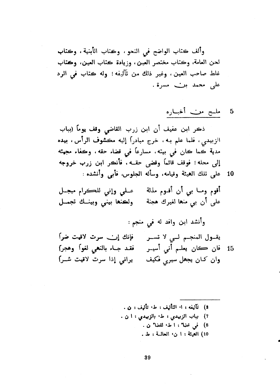 وألف كتاب الواضح في النحو. وكتاب الأبنية. وكتاب لحن العامة. وكتاب مختصر العين، وزيادة كتاب العين. وكتاب غلط صاحب العين، وغير ذلك من تأليفه. وله كتاب في الردّ على محمد بن مسرة. رحمه الله.