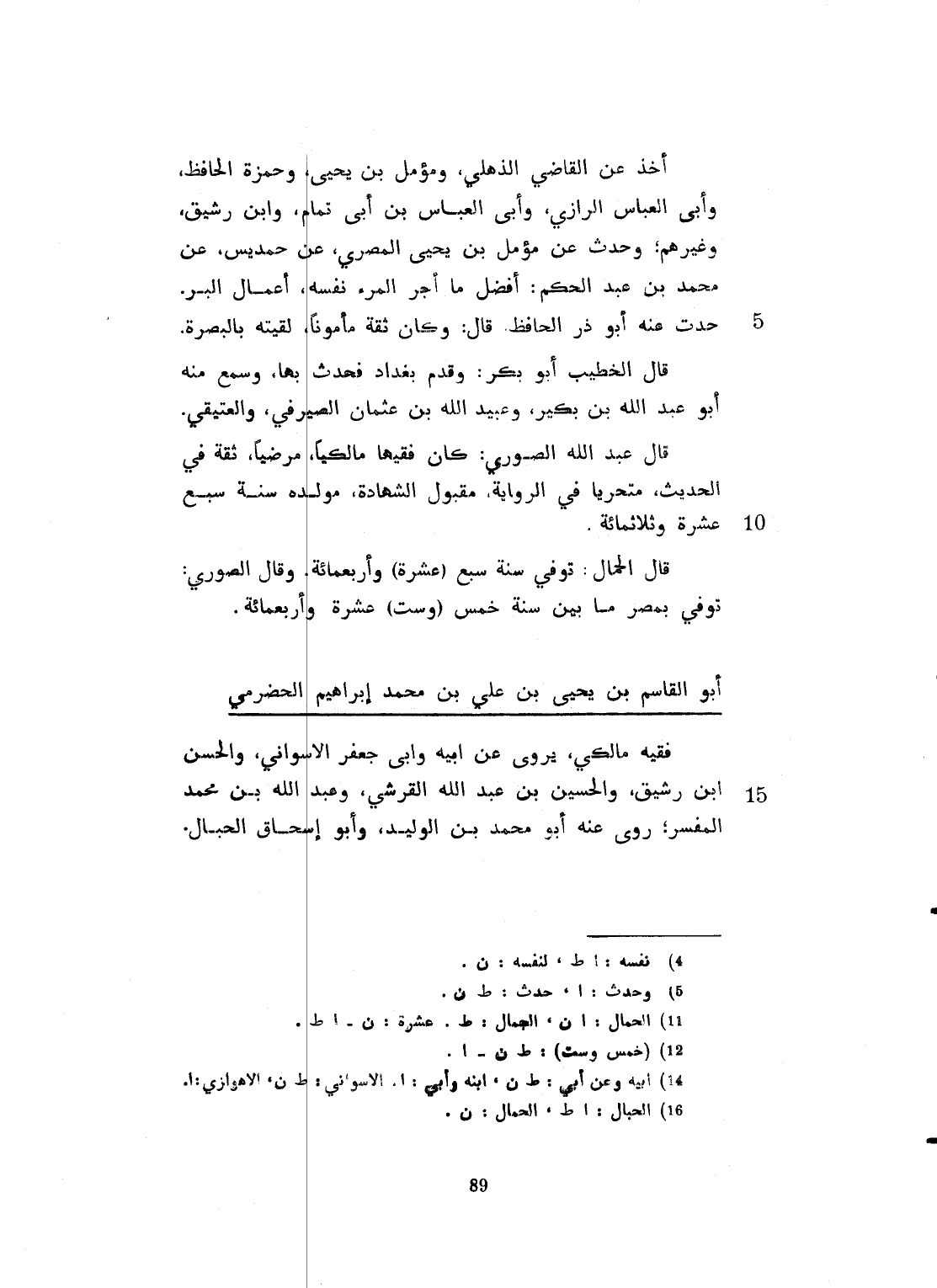 أخذ عن القاضي الذهلي، ومؤمل بن يحيى، وحمزة الحافظ، وأبي العباس الرازي، وأبي العباس ابن أبي تمام، وابن رشيق، وغيرهم، وحدث عن مؤمل بن يحيى المصري، عن حمديس، عن محمد بن عبد الحكم: أفضل ما جر المرء نفسه في أعمال البر، حدث عنه أبو ذر الحافظ قال وكان ثقة مأموناً، لقيته بالبصرة. قال الخطيب أبو بكر: وقدم بغداد فحدّث بها وسمع منه أبو عبد الله بن بكير وعبيد الله بن عثمان الصيرفي، والعتيقي، قال أبو عبد الله الصوري: وكان فقيهاً مالكياً مرضياً ثقة في الحديث متحرياً في الرواية مقبول الشهادة. مولده سنة عشر وثلاثماية، قال الحبال توفي سنة سبع وأربعماية، وقال الصوري: توفي بمصر ما بين سنة خمس وسنة عشرة وأربعماية.