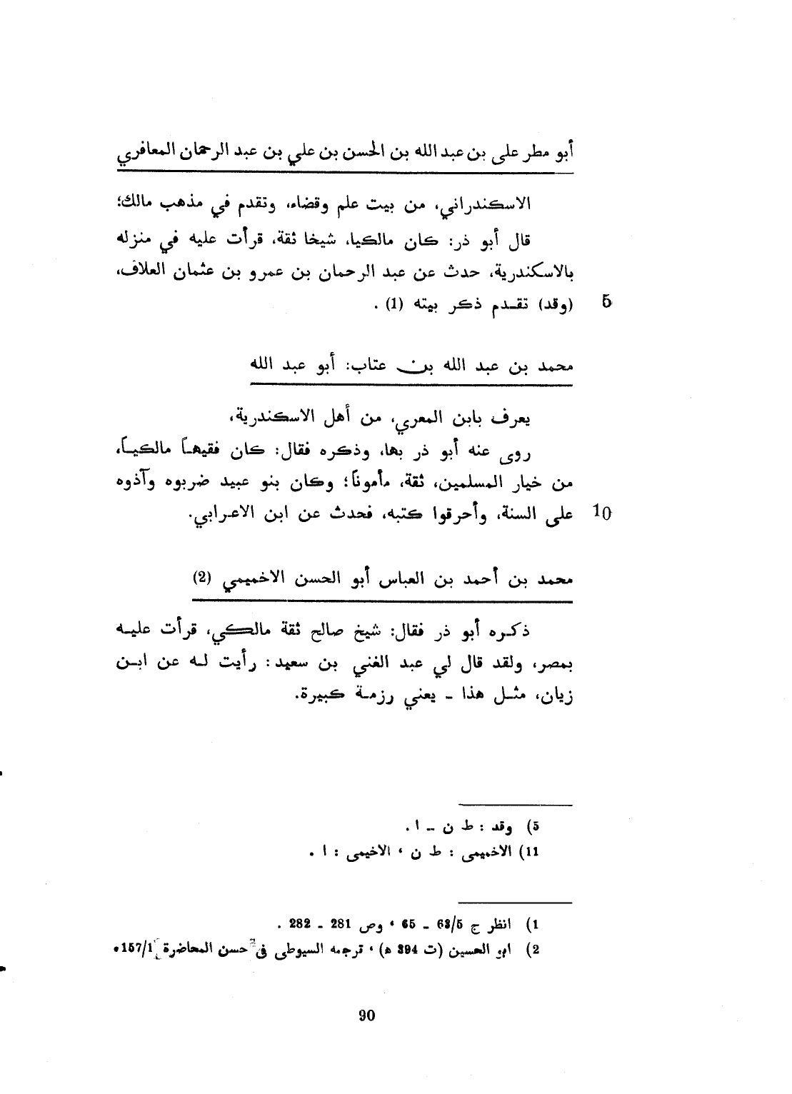 أبو الحسن الأخميني، ذكره أبو ذر فقال شيخ صالح ثقة مالكي، قرأت عليه بمصر، ولقد قال لي عبد الغني بن سعيد رأيت له عن ابن زيان مثل هذا - يعني رزمة كبيرة.