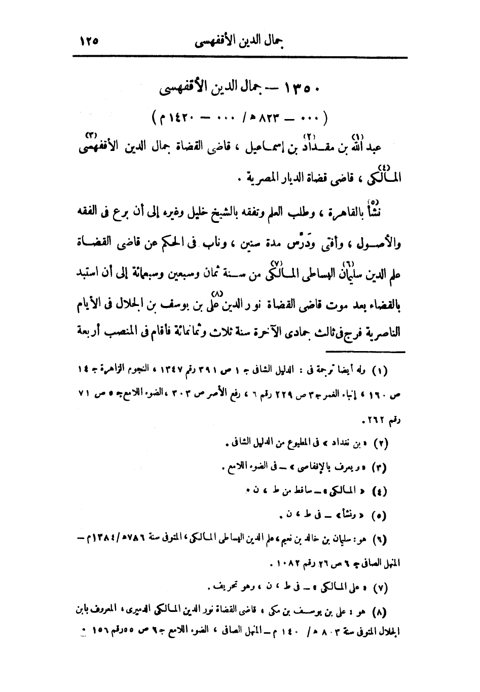 عبد الله بن مقداد بن إسماعيل، قاضي القضاة جمال الدين الأقفهسي المالكي قاضي قضاة الديار المصرية.