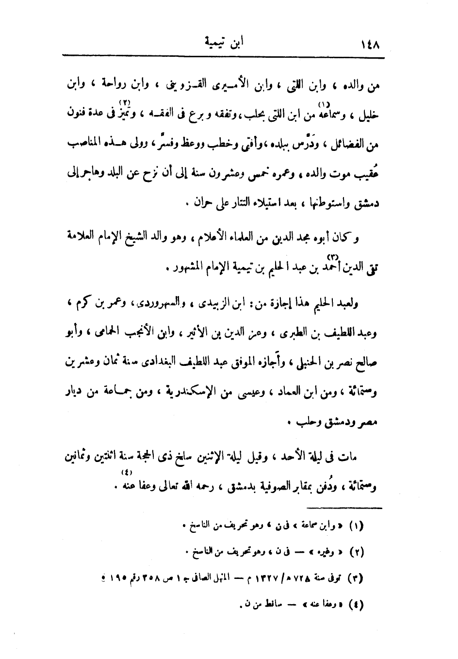 وكان أبوه مجد الدين من العلماء الأعلام، وهو والد الشيخ الإمام العلامة تقي الدين أحمد بن عبد الحليم بن تيمية الإمام المشهور.