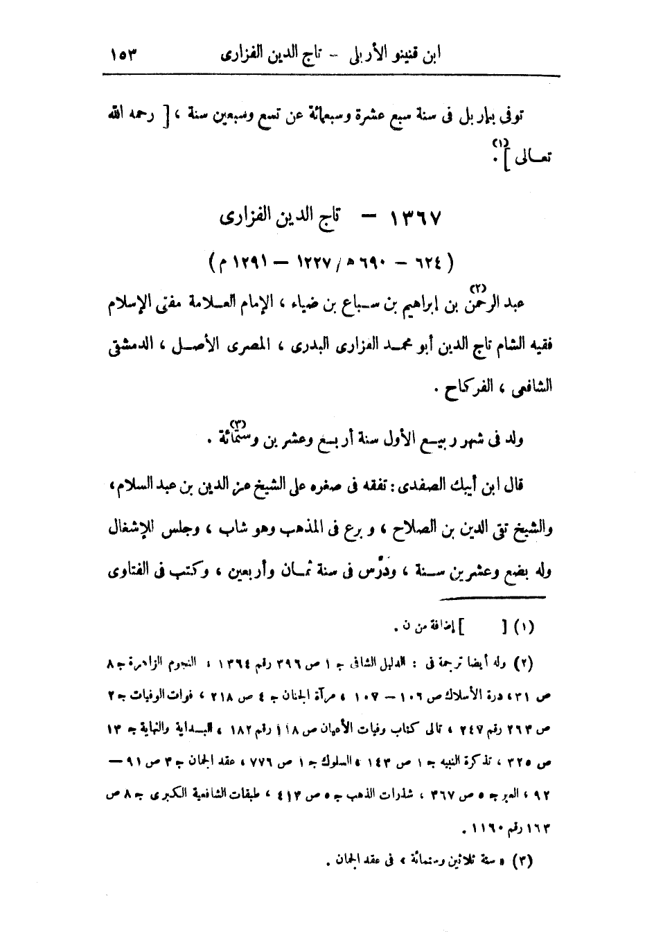 عبد الرحمن بن إبراهيم بن سباع بن ضياء، الإمام العلامة مفتي الإسلام فقيه الشام تاج الدين أبو محمد الفزاري البدري، المصري الأصل، الدمشقي الشافعي، الفركاح.