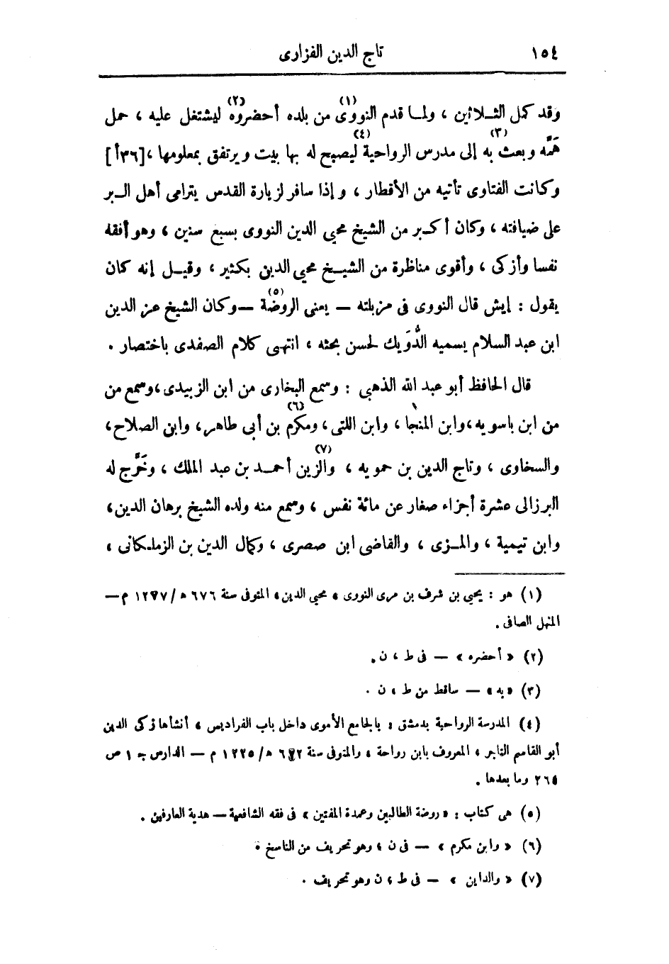 وقد كمل الثلاثين، ولما قدم النووي من بلده أحضروه ليشتغل عليه، حمل همه وبعث به إلى مدرس الرواحية ليصبح له بها بيت ويرتفق بمعلومها، وكانت الفتاوى تأتيه من الأقطار، وإذا سافر لزيارة القدس يترامى أهل البر على ضيافته، وكان أكبر من الشيخ محيي الدين النووي بسبع سنين، وهو أفقه نفساً وأزكى، وأقوى مناظرة من الشيخ محي الدين بكثير، وقيل إنه كان يقول: إيش قال النووي في مزبلته - يعني الروضة - وكان الشيخ عز الدين ابن عبد السلام يسميه الدويك لحسن بحثه، انتهى كلام الصفدي باختصار.
