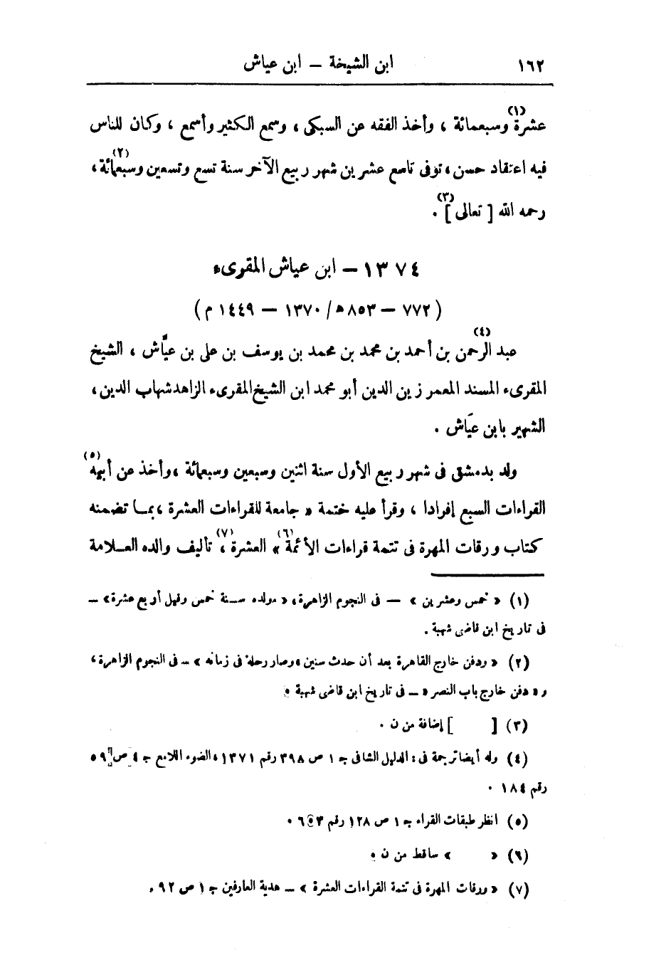 عبد الرحمن بن أحمد بن محمد بن محمد بن يوسف بن علي بن عياش، الشيخ المقرئ المسند المعمر زين الدين أبو محمد ابن الشيخ المقرئ الزاهد شهاب الدين، الشهير بابن عياش.