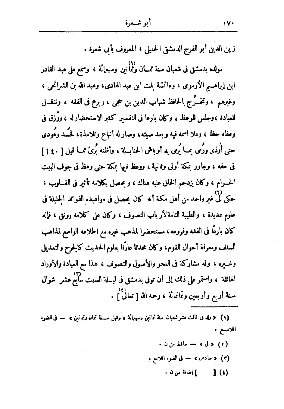 زين الدين أبو الفرج الدمشقي الحنبلي، المعروف بأبي شعرة.