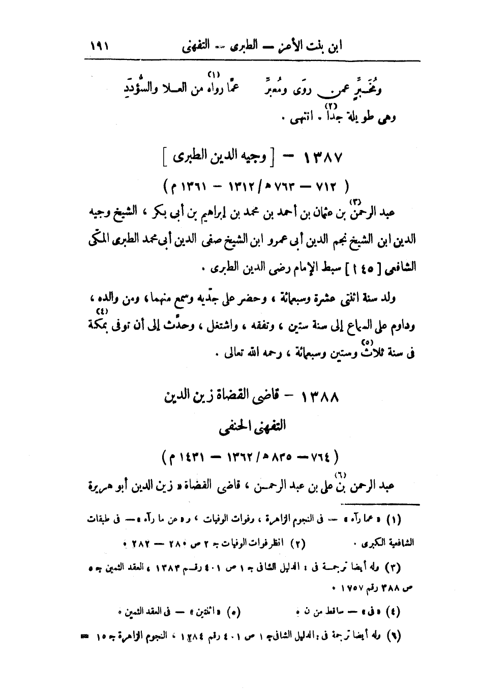 عبد الرحمن بن عثمان بن أحمد بن محمد بن إبراهيم بن أبي بكر، الشيخ وجيه الدين ابن الشيخ نجم الدين أبي عمرو ابن الشيخ صفي الدين أبي محمد الطبري المكي الشافعي سبط الإمام رضي الدين الطبري المكي الشافعي سبط الإمام رضي الدين الطبري.