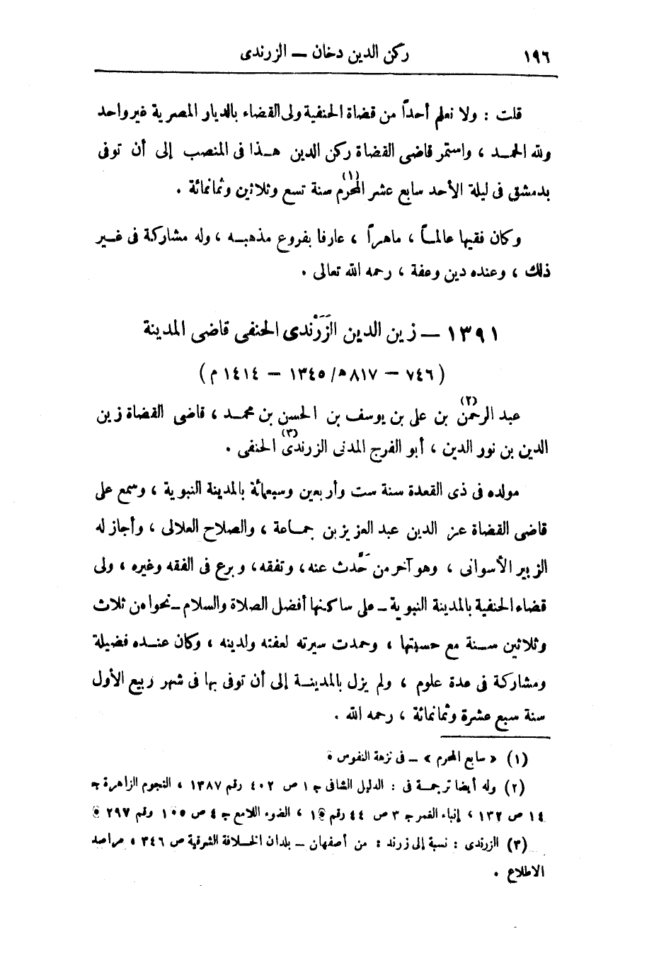 1391 - زين الدين الزرندي الحنفي قاضي المدينة