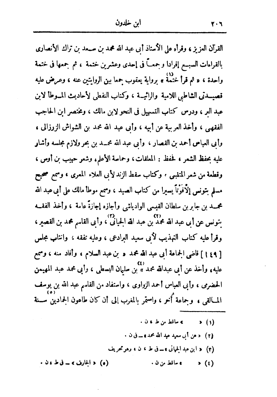 القرآن العزيز، وقرأه على الأستاذ أبي عبد الله محمد بن سعد بن تراك الأنصاري بالقراءات السبع إفراداً وجمعاً في إحدى وعشرين ختمة، ثم جمعها في ختمة واحدة، ثم قرأ ختمة برواية يعقوب جمعاً بين الروايتين عنه، وعرض عليه قصيدتي الشاطبي اللامية والرائية، وكتاب النفطي لأحاديث الموطأ لابن عبد البر، ودرس كتاب التسهيل في النحو لابن مالك، ومختصر ابن الحاجب الفقهي، وأخذ العربية عن أبيه، وأبي عبد الله محمد بن الشواش الزرزالي، وأبي العباس أحمد بن القصار، وأبي عبد الله محمد بن بحر ولازم مجلسه وأشار عليه بحفظ الشعر، فحفظ: المعلقات، وحماسة الأعلم، وشعر حبيب بن أوس، وقطعة من شعر المتنبي، وكتاب سقط الزند لأبي العلاء المعري، وسمع صحيح مسلم بتونس إلا فوتاً يسيراً من كتاب الصيد، وسمع موطأ مالك على أبي عبد الله محمد بن جابر بن سلطان القيسي الوادياشي وأجازه إجازة عامة، وأخذ الفقه بتونس عن أبي عبد الله محمد بن عبد الله الجياني وأبي القاسم محمد بن القصير، وقرأ عليه كتاب التهذيب لأبي سعيد البرادعي، وعليه تفقه، وانتاب مجلس قاضي الجماعة أبي عبد الله محمد بن عبد السلام، وأفاد منه وسمع عليه، وأخذ عن أبي عبد الله محمد بن سليمان البسطي، وأبي محمد عبد المهيمن الحضرمي، وأبي العباس أحمد الزواوي، واستفاد من القاسم عبد الله بن يوسف المالقي، وجماعة أخرى، واستمر بالمغرب إلى أن كان طاعون الجمادين سنة