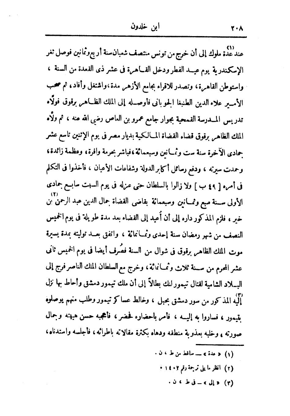 عند عدة ملوك إلى أن خرج من تونس منتصف شعبان سنة أربع وثمانين فوصل ثغر الإسكندرية يوم عيد الفطر ودخل القاهرة في عشر ذي القعدة من السنة واستوطن القاهرة، وتصدر للإقراء بجامع الأزهر مدة، واشتغل وأفاد، ثم صحب الأمير علاء الدين الطنبغا الجوباني فأوصله إلى الملك الظاهر برقوق فولاه تدريس المدرسة القمحية بجوار جامع عمرو بن العاص رضي الله عنه، ثم ولاه الملك الظاهر برقوق قضاء القضاة المالكية بديار مصر في يوم الاثنين تاسع عشر جمادى الآخرة سنة ست وثمانين وسبعمائة، فباشر بحرمة وافرة، وعظمة زائدة، وحمدت سيرته، ودفع رسائل أكابر الدولة وشفاعات الأعيان، فأخذوا في التكلم في أمره ولا زالوا بالسلطان حتى عزله في يوم السبت سابع جمادى الأولى سنة سبع وثمانين وسبعمائة بقاضي القضاة جمال الدين عبد الرحمن بن خير، فلزم المذكور داره إلى أن أعيد إلى القضاء بعد مدة طويلة في يوم الخميس النصف من شهر رمضان سنة إحدى وثمانمائة، واتفق عبد توليته بمدة يسيرة موت الملك الظاهر برقوق في شوال من السنة فصرف أيضاً في يوم الخميس ثاني عشر المحرم من سنة ثلاث وثمانمائة، وخرج مع السلطان الملك الناصر فرج إلى البلاد الشامية، لقتال تيمور دمشق وأحاط بها نزل إليه المذكور من سور دمشق بحبل وخالط عساكر يتمور لنك بطالاً إلى أن ملك تيمور وطلب منهم يوصلوه بتيمور، فساروا به إليه، فأمر بإحضاره فحضر، فأعجبه حسن هيئته وجمال صورته، وخلبه بعذوبة منطقه ودهاه بكثرة مقالاته بإطرائه، فأجلسه واستدناه،
